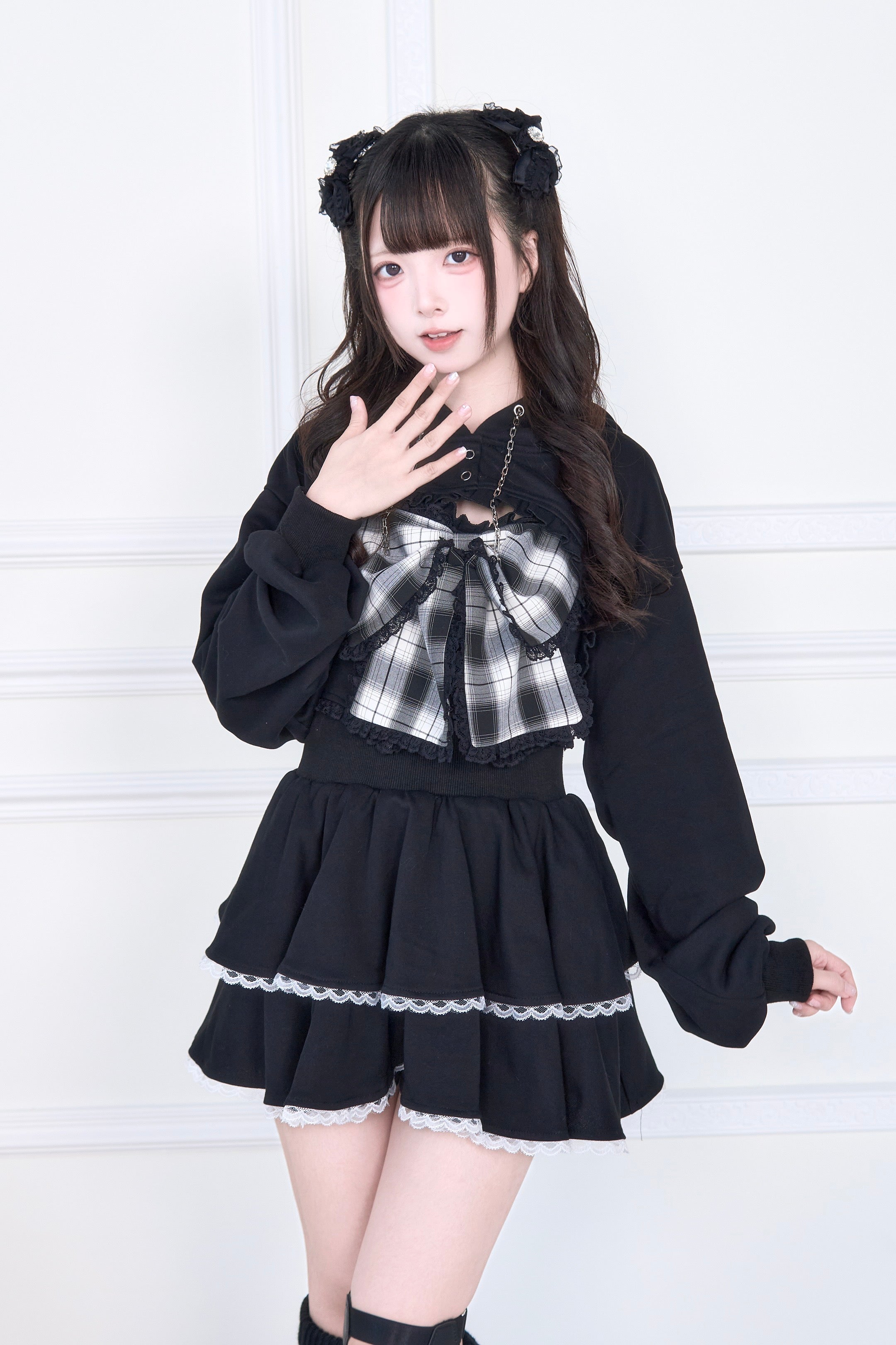 2WAY Overall Skirt & Ribbon Brooch Blouse