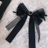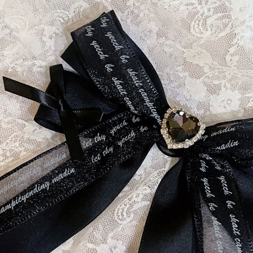 This ribbon brooch is decorated with sparkling black heart jewels that will make your heart flutter.