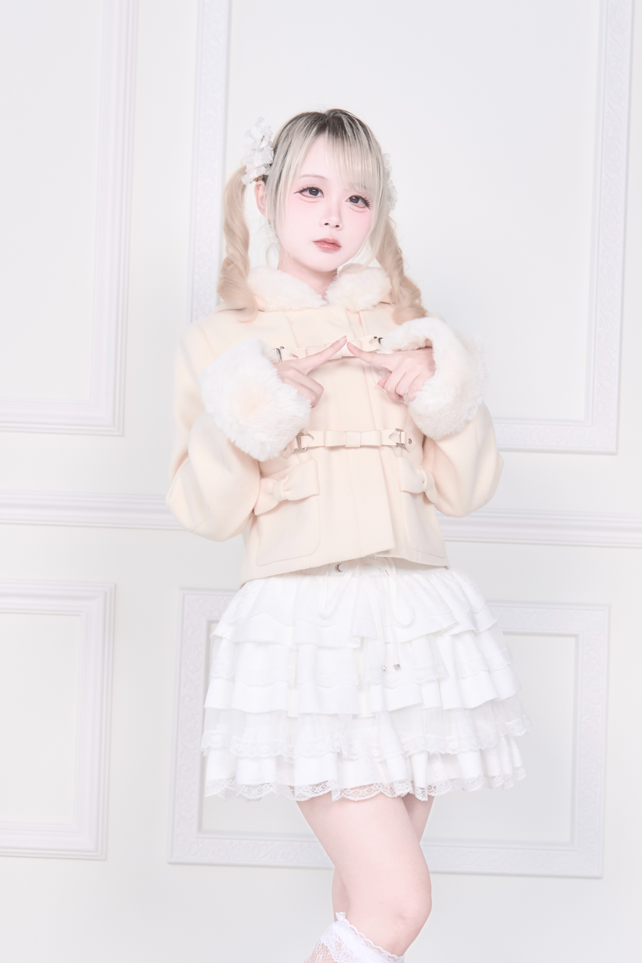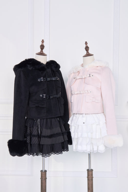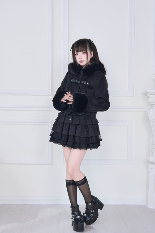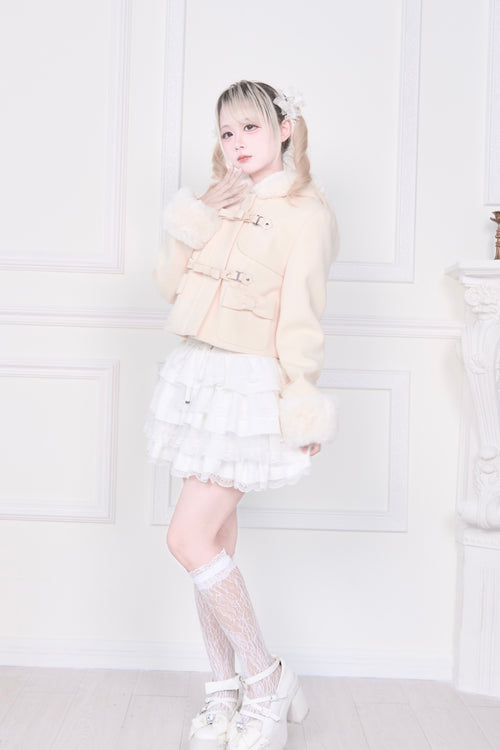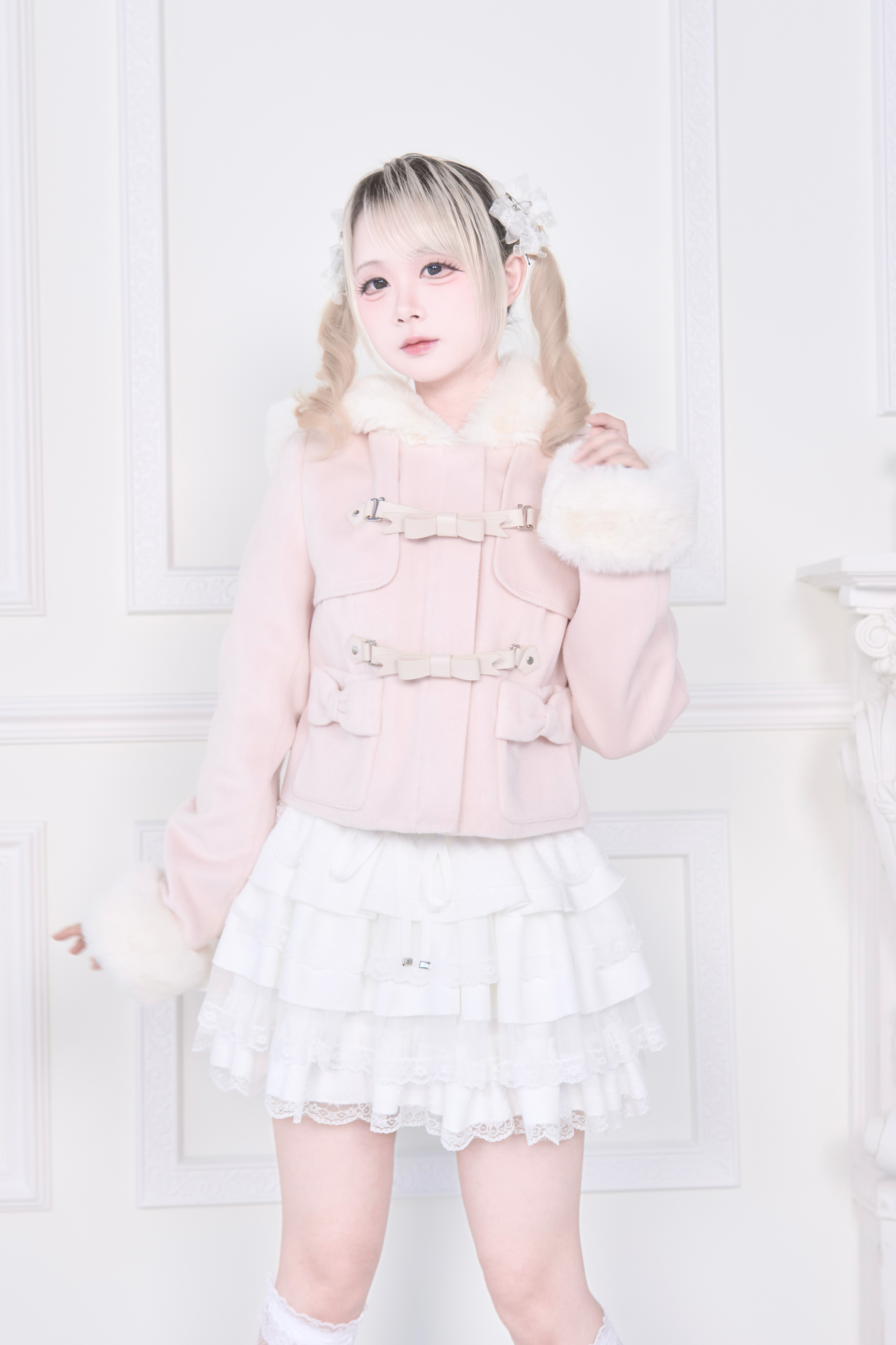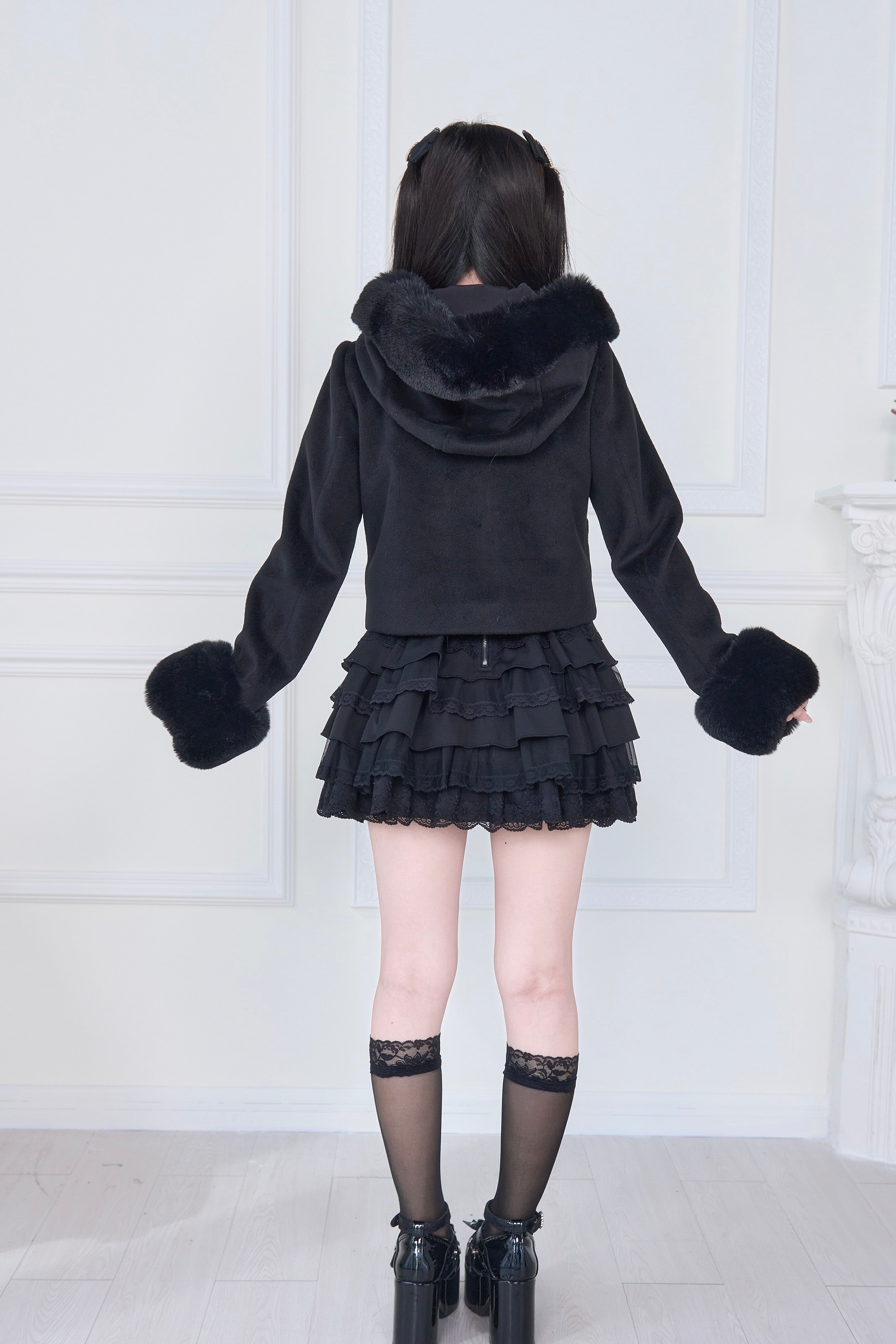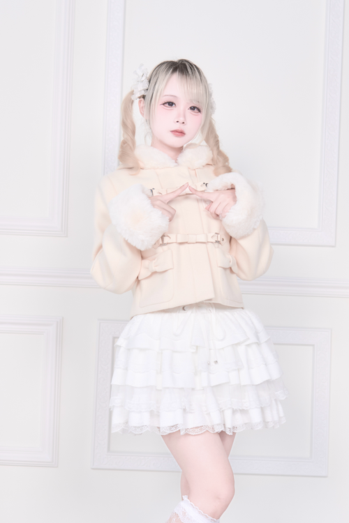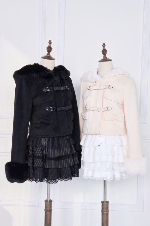 A short duffle coat with fluffy faux fur that's perfect for winter.