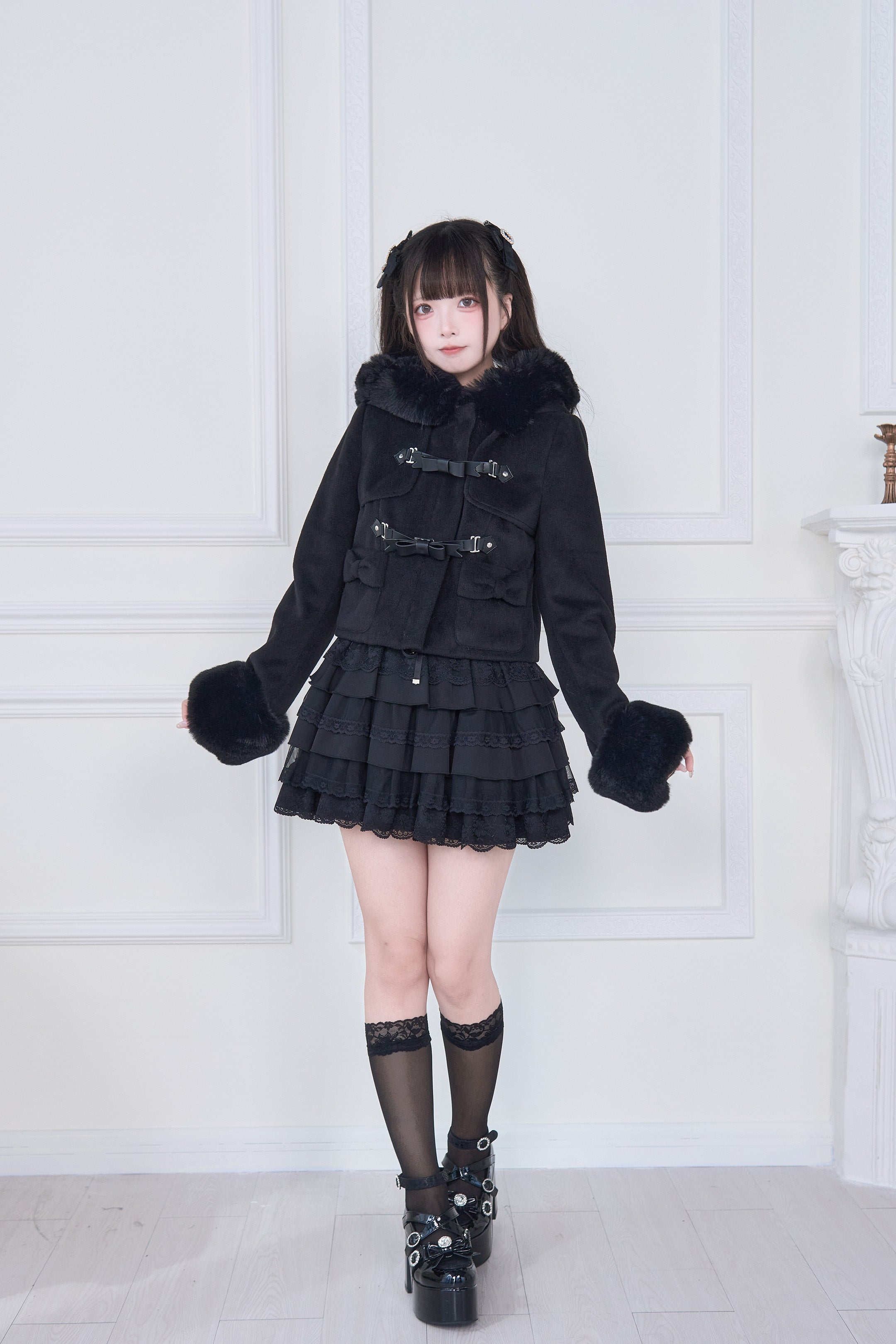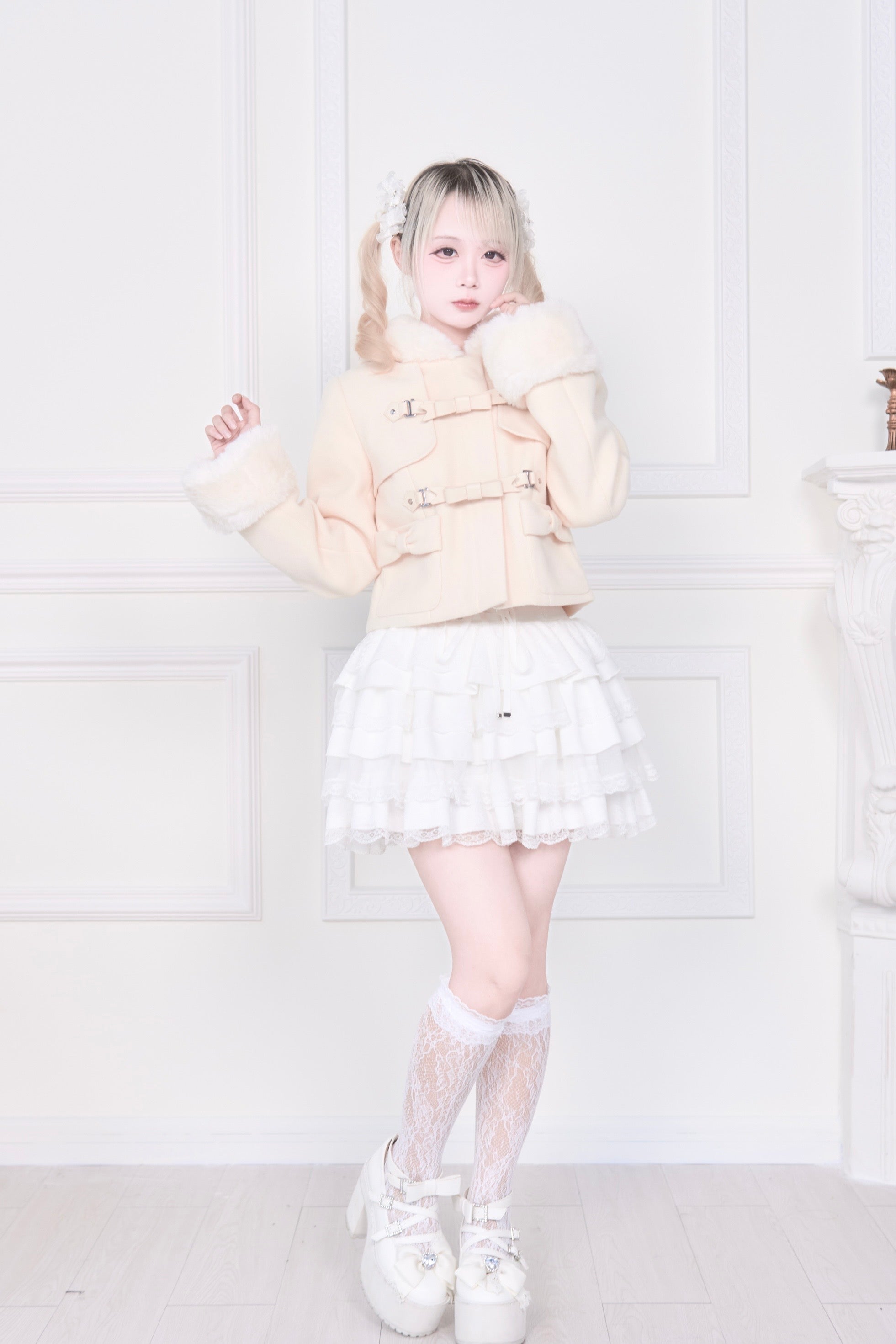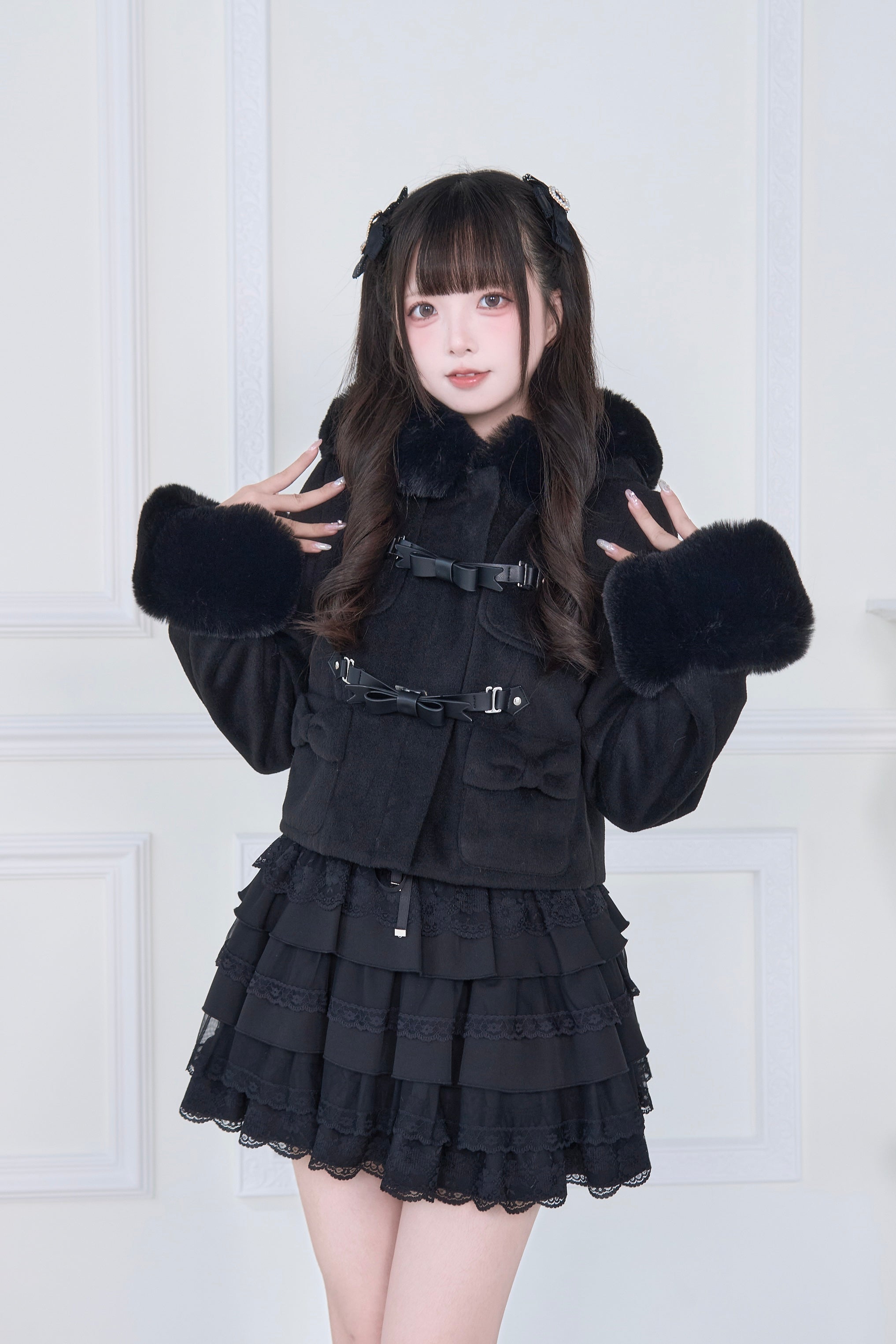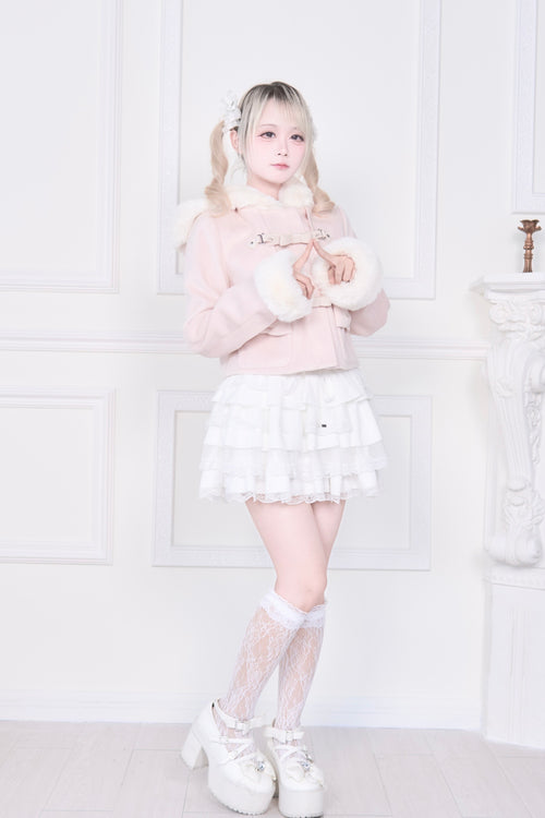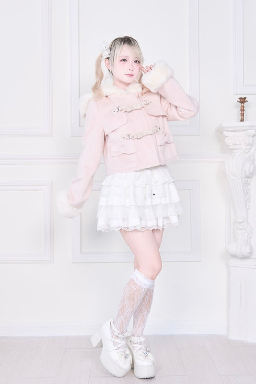 A short duffle coat with fluffy faux fur that's perfect for winter.