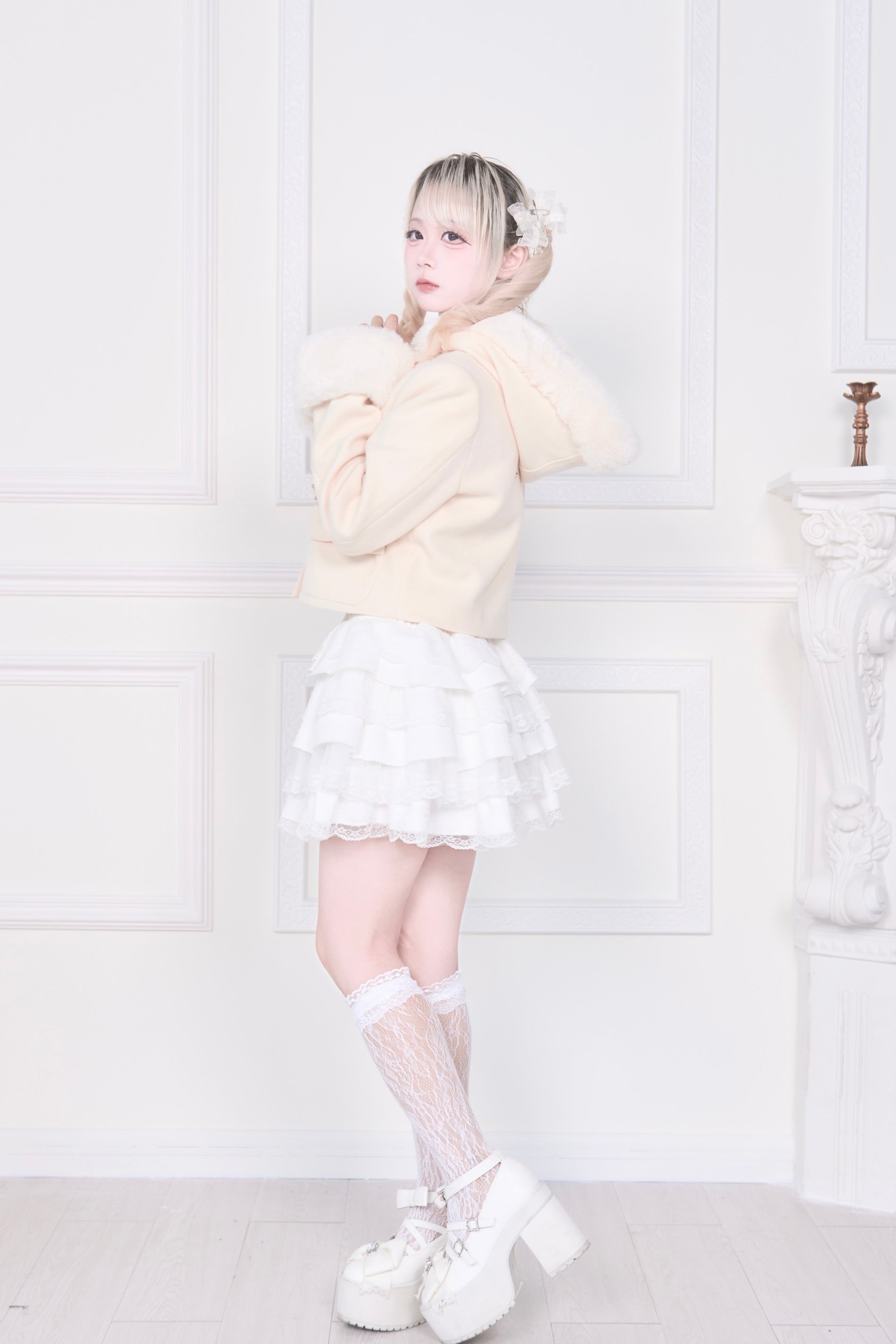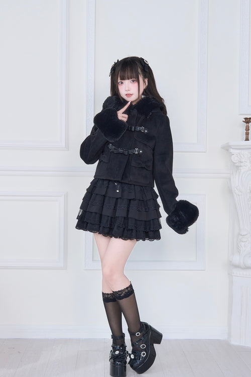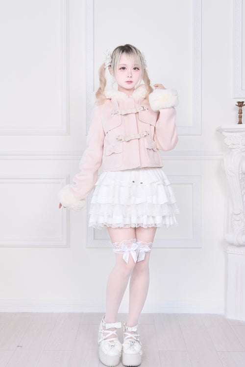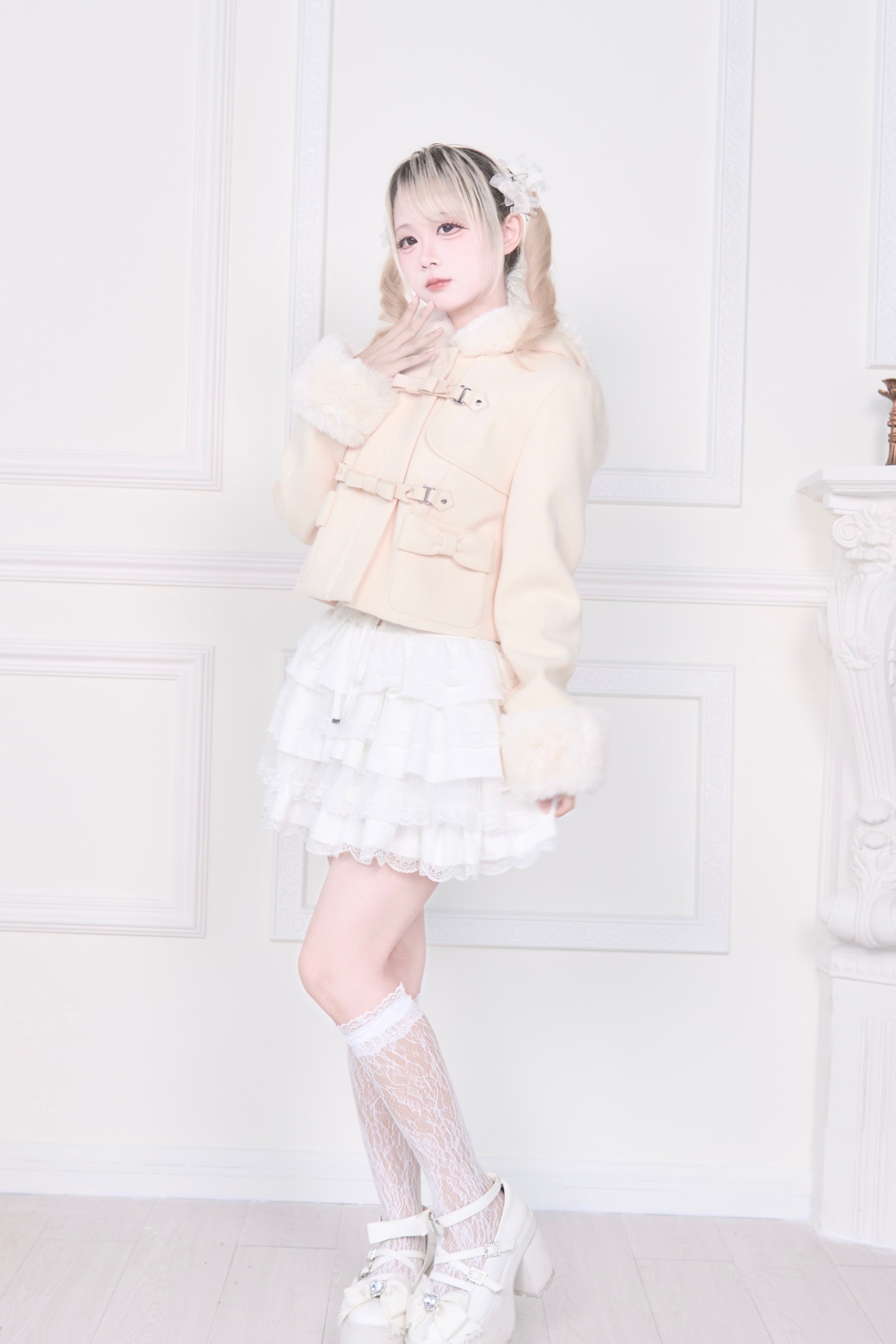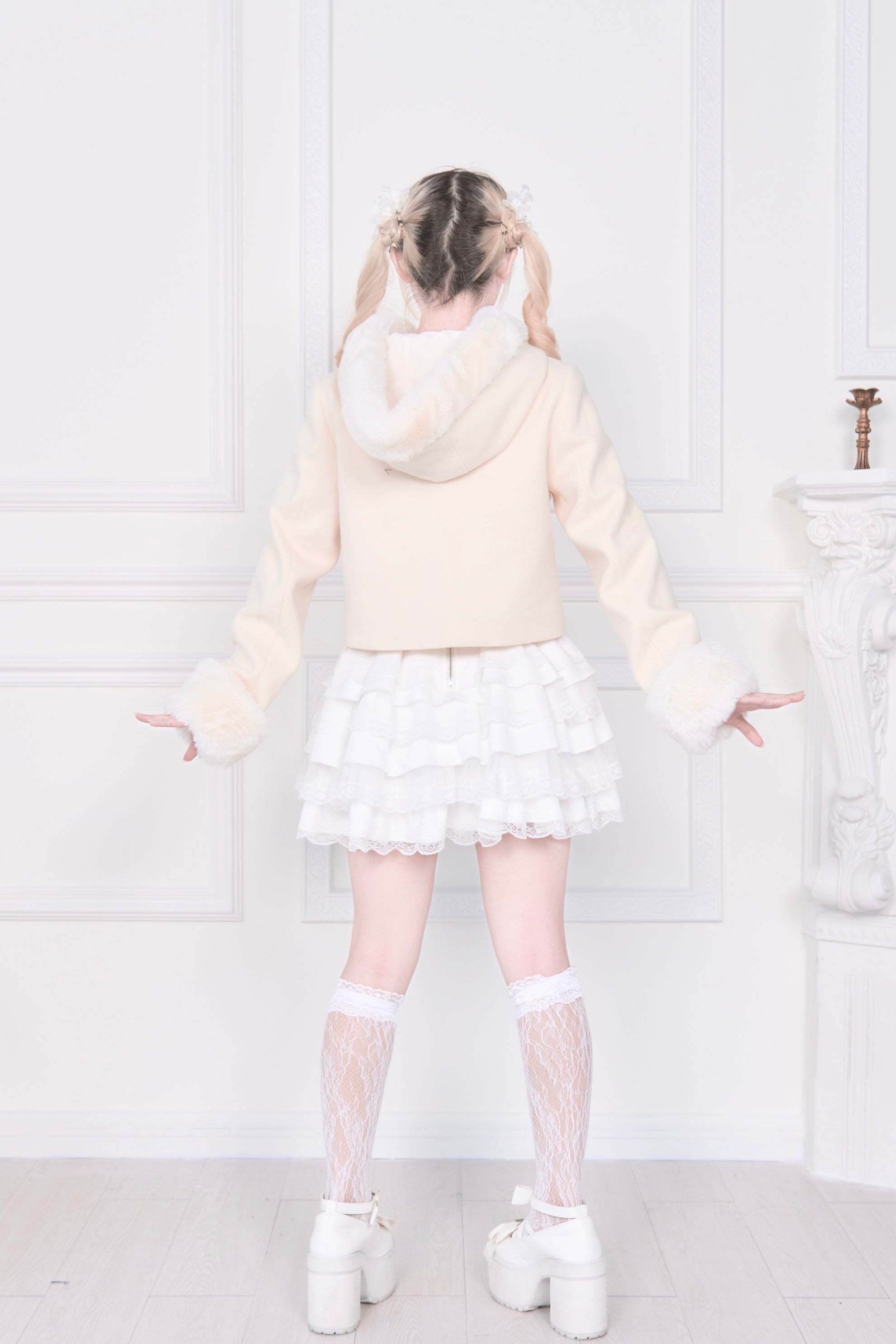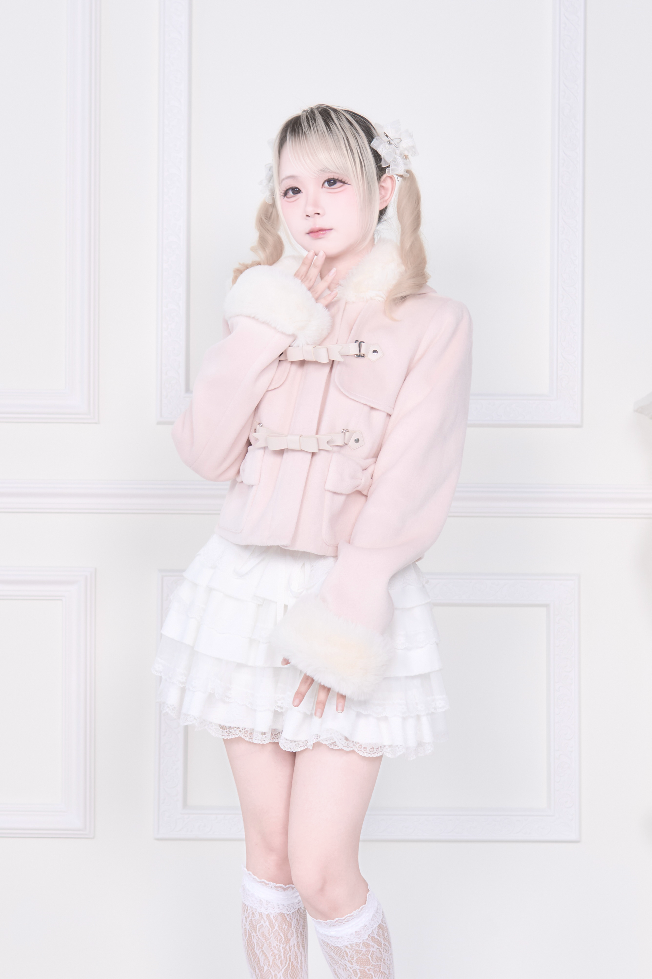 A short duffle coat with fluffy faux fur that's perfect for winter.