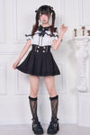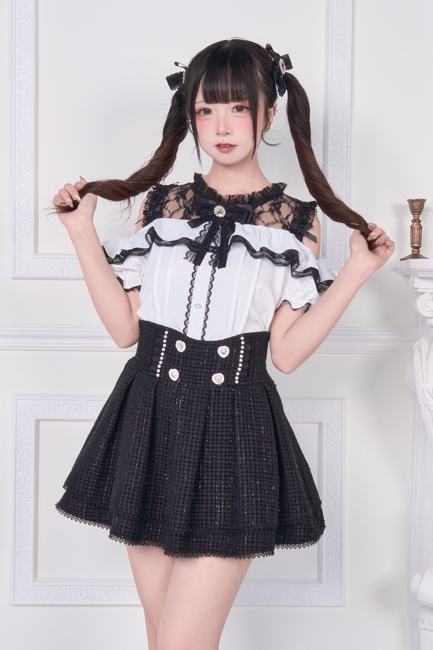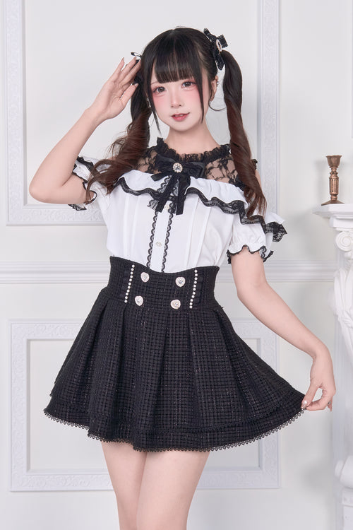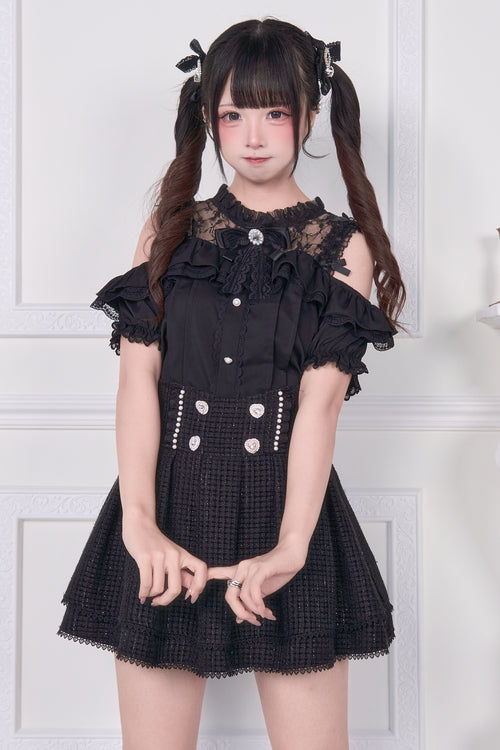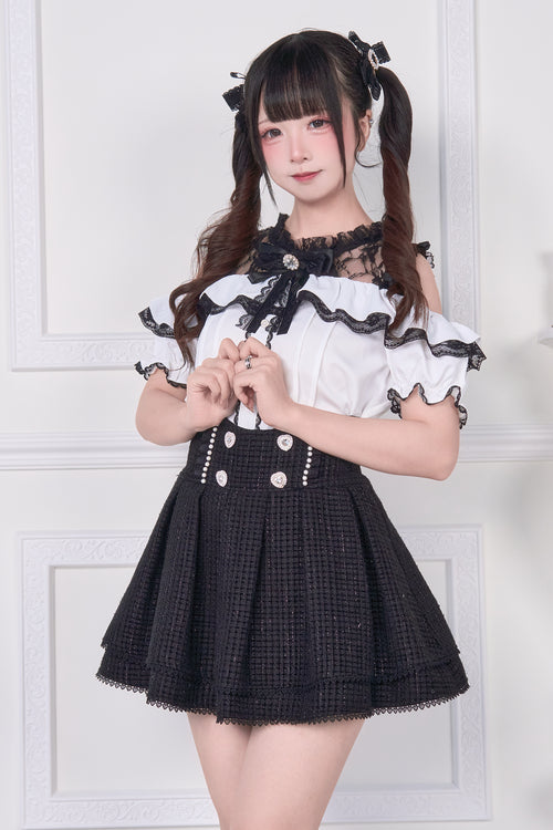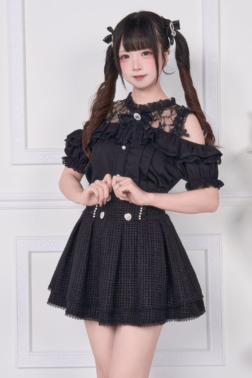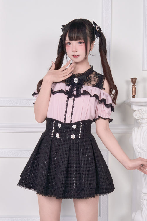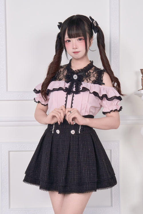 Lace-up off-the-shoulder short-sleeve blouse