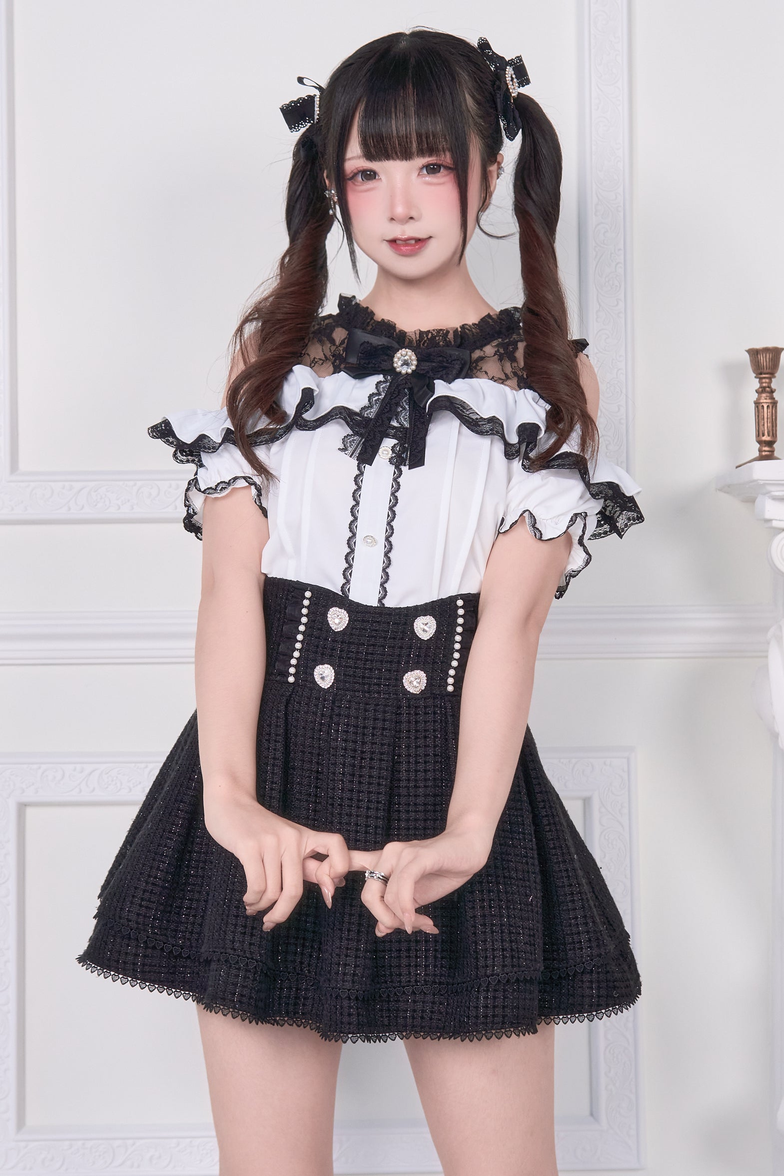 - ■ An elegant silhouette created by off-the-shoulder design