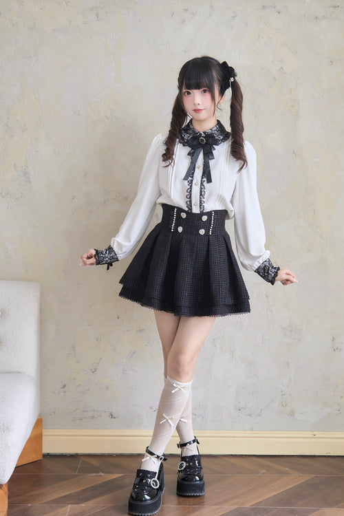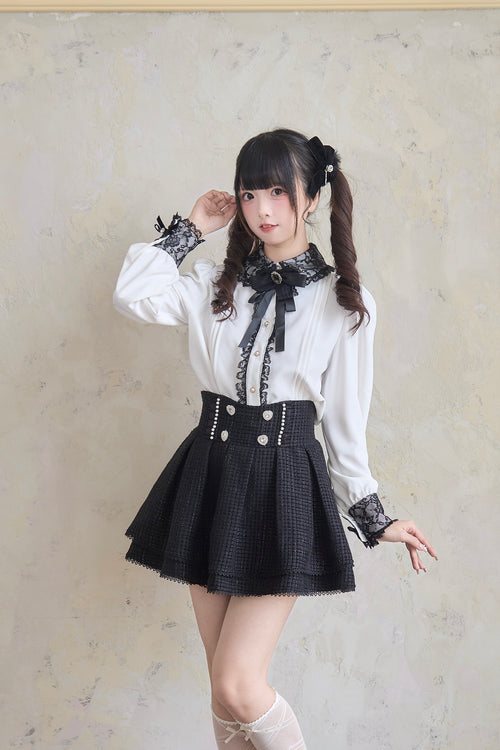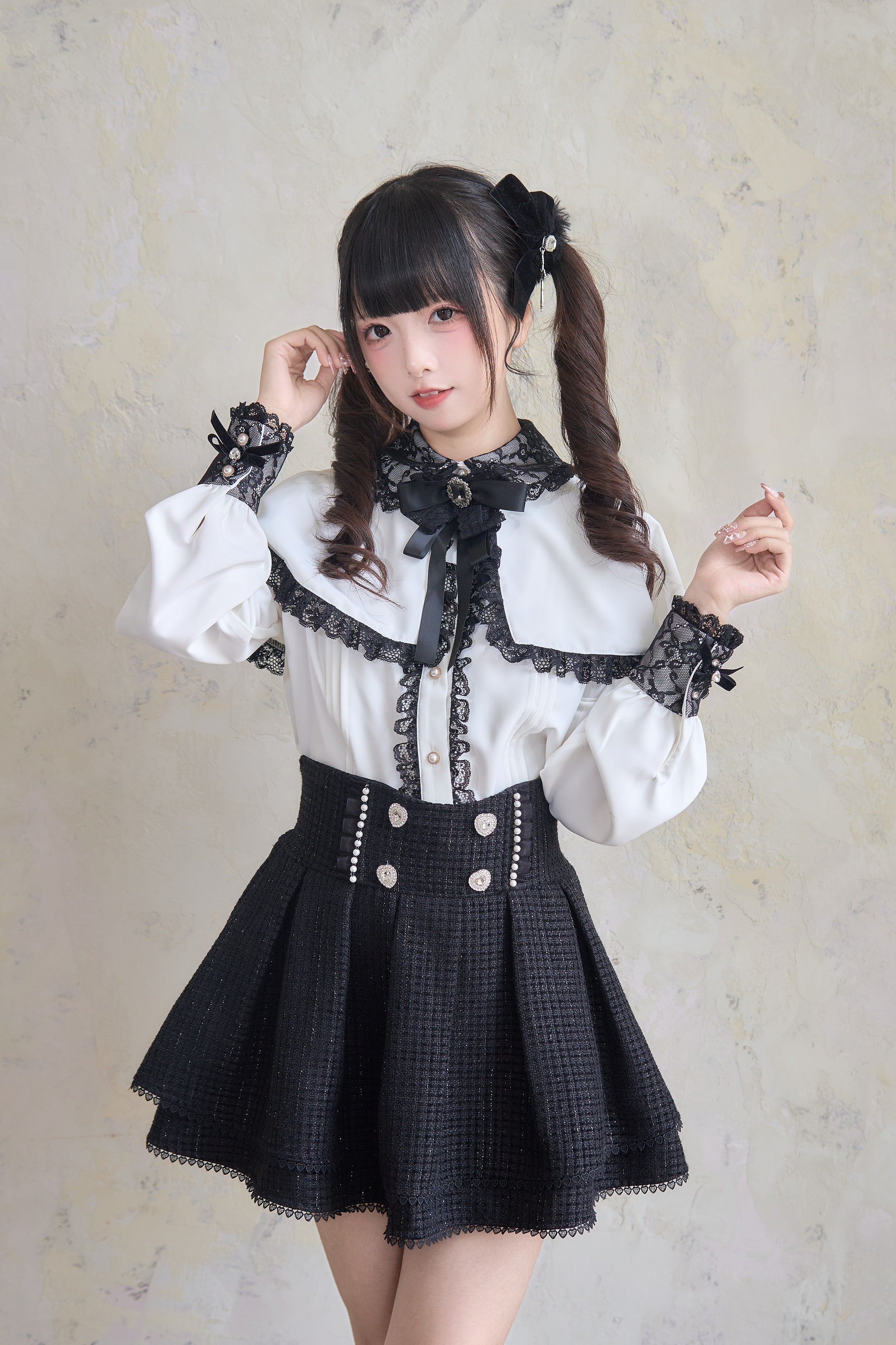 A beautiful brooch is attached to the chest and is removable, so you can enjoy combining it with your favorite accessories. The lace details on the cuffs and collar add elegance, making this a design that is overflowing with loveliness from any angle.