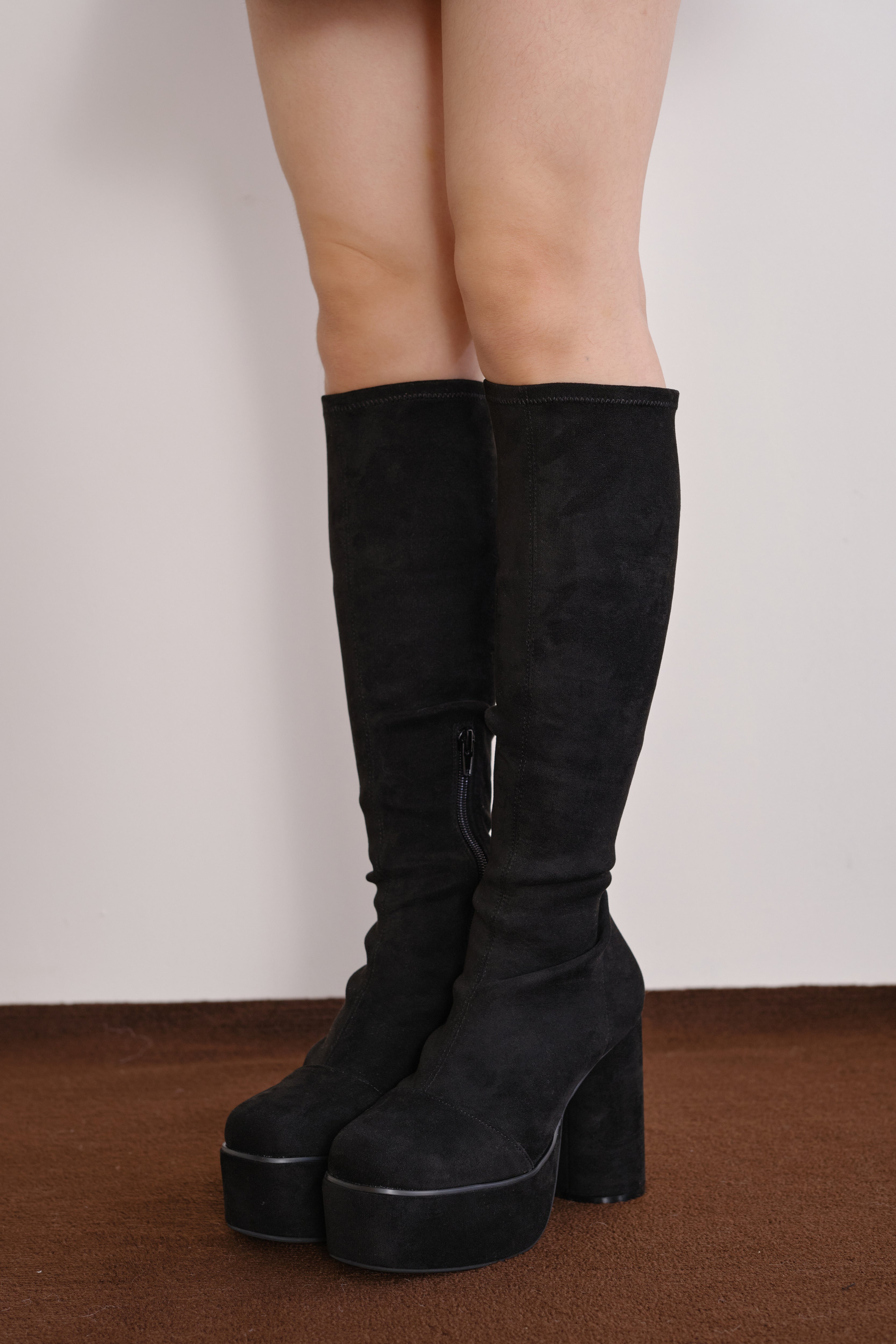 These stretch long boots have an appealing, snug fit that wraps around your feet.