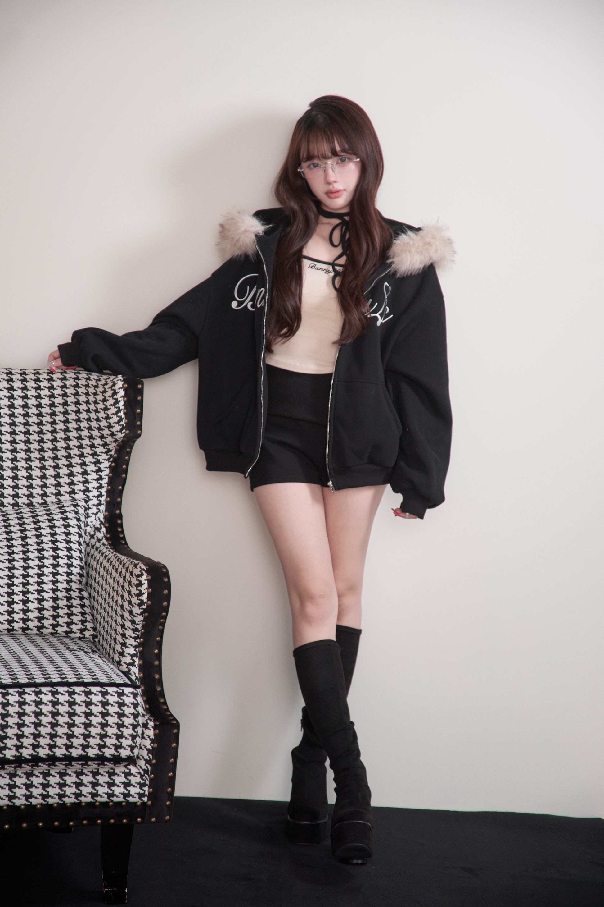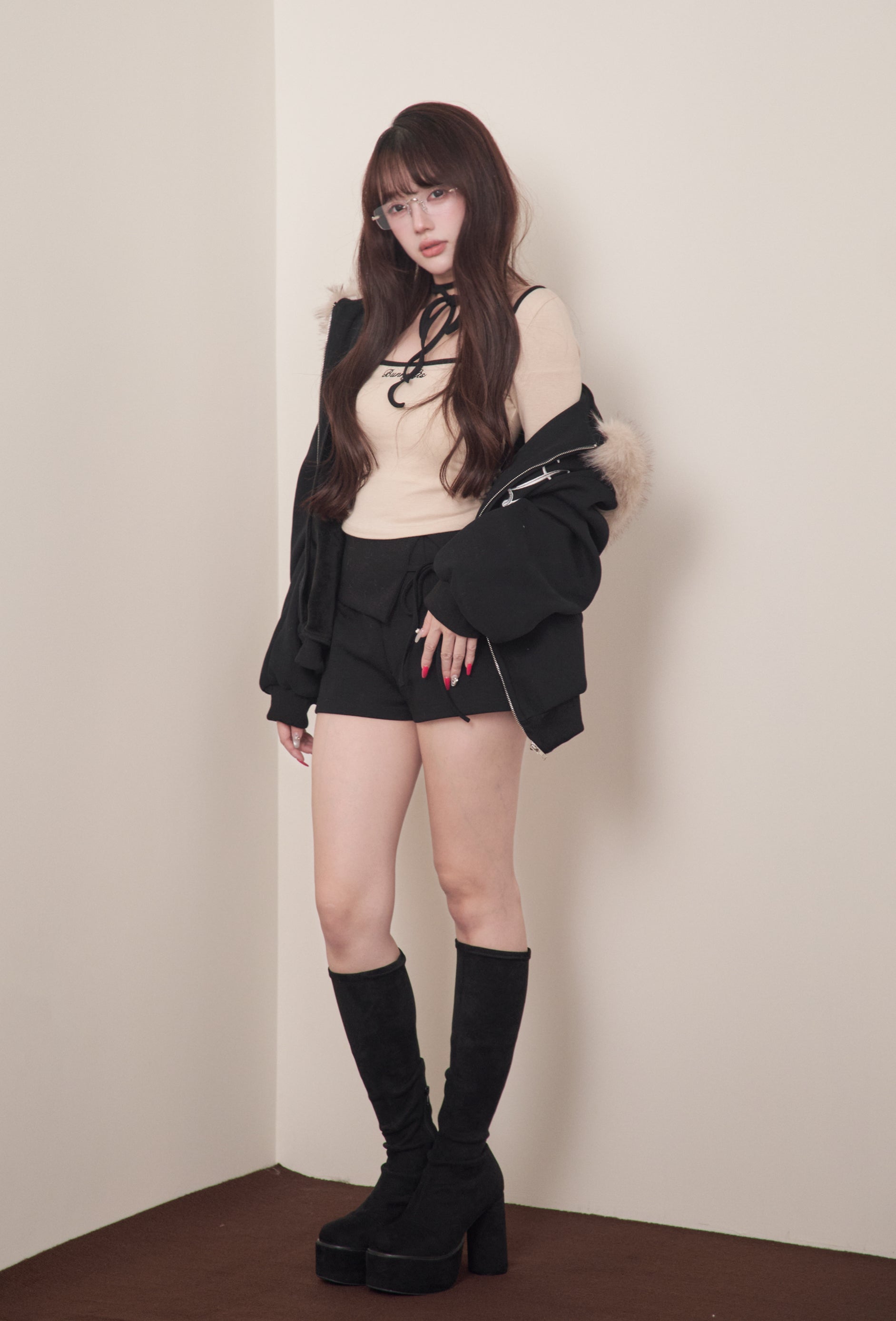 Pair it with short bottoms or a miniskirt to create a style that combines the cuteness and coolness that is characteristic of BunnyLis.