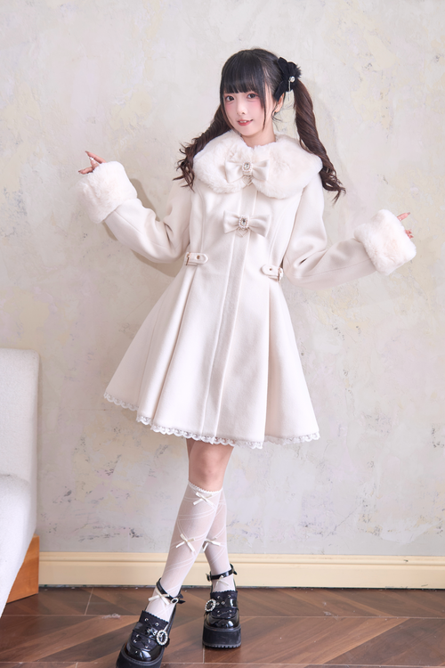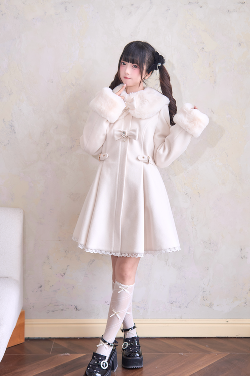 The key feature is the detachable fluffy collar and cuffs! The soft fur protects you from the cold winter weather while adding a touch of cuteness. You can also remove the fur for a more streamlined look depending on the occasion or your mood.