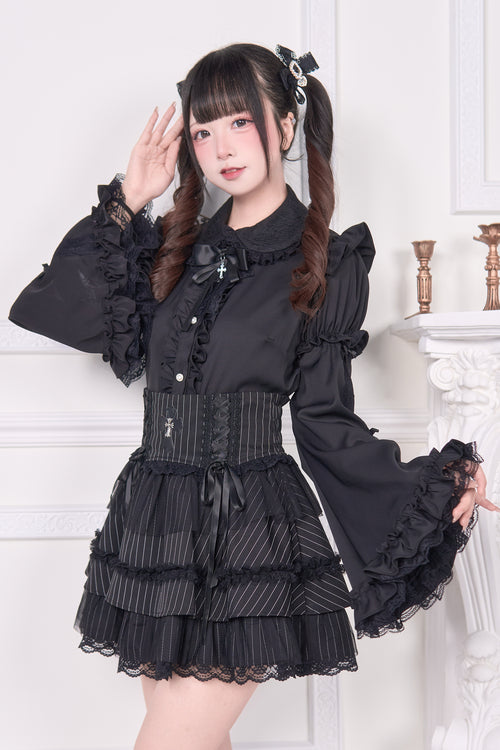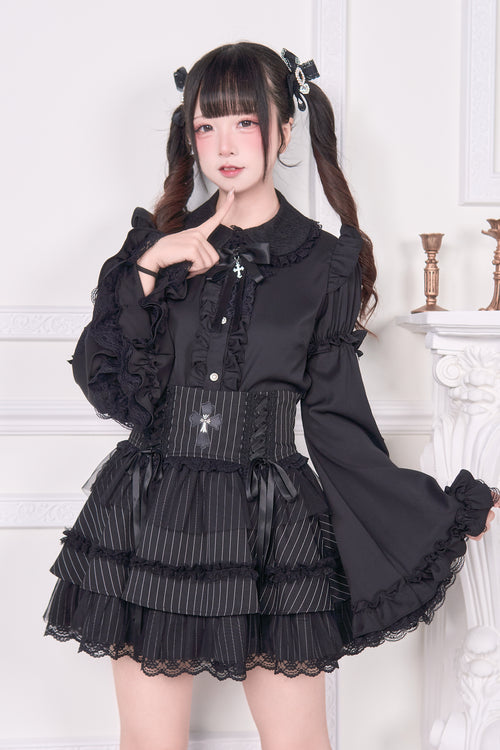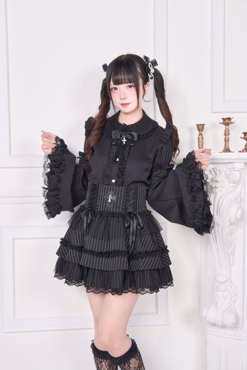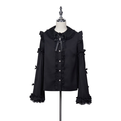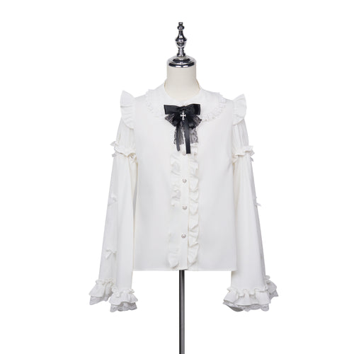 The luxurious lace frills from the collar to the cuffs add a romantic touch and look great in photos. This piece will give you a classic and lovely style.
