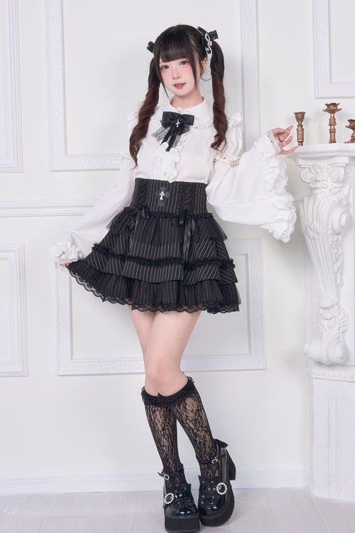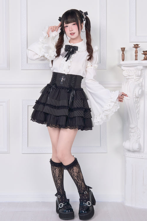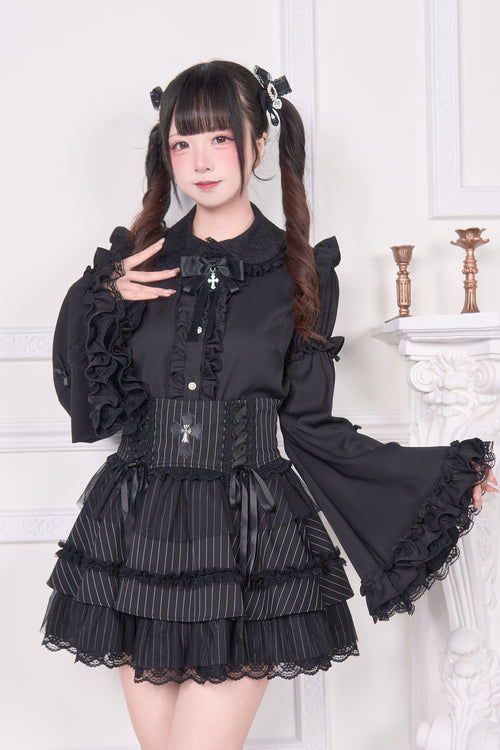 The front features a delicate lace-up design and a removable ribbon brooch at the chest, allowing you to enjoy arranging it to suit your mood and outfit.
