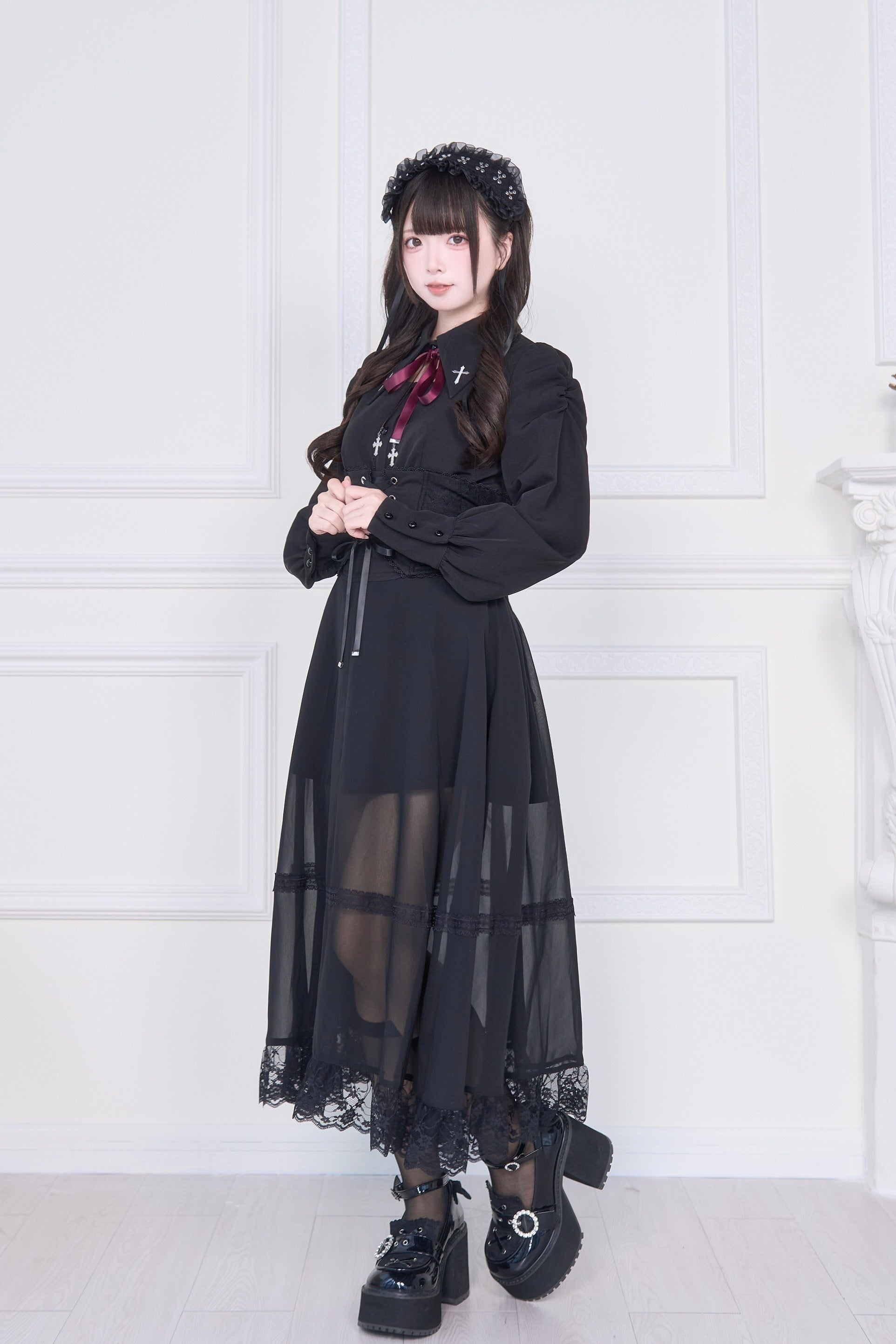 ほんのりゴシックなムードが漂い、大人っぽさの中に可愛らしさも感じられる一着です。