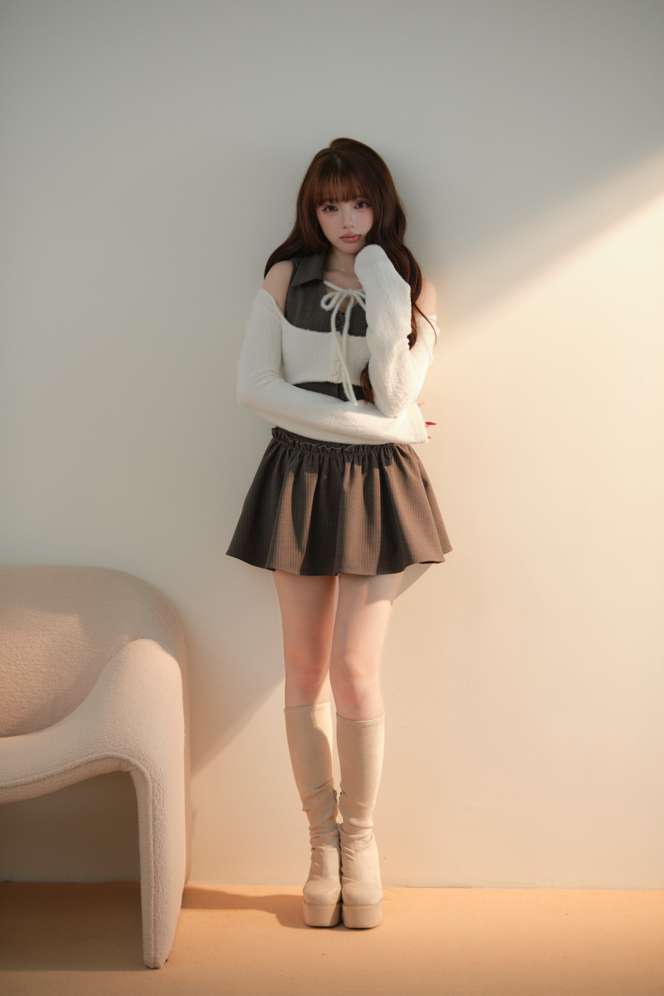 異素材の組み合わせが、奥行きのあるコーディネートを演出します
