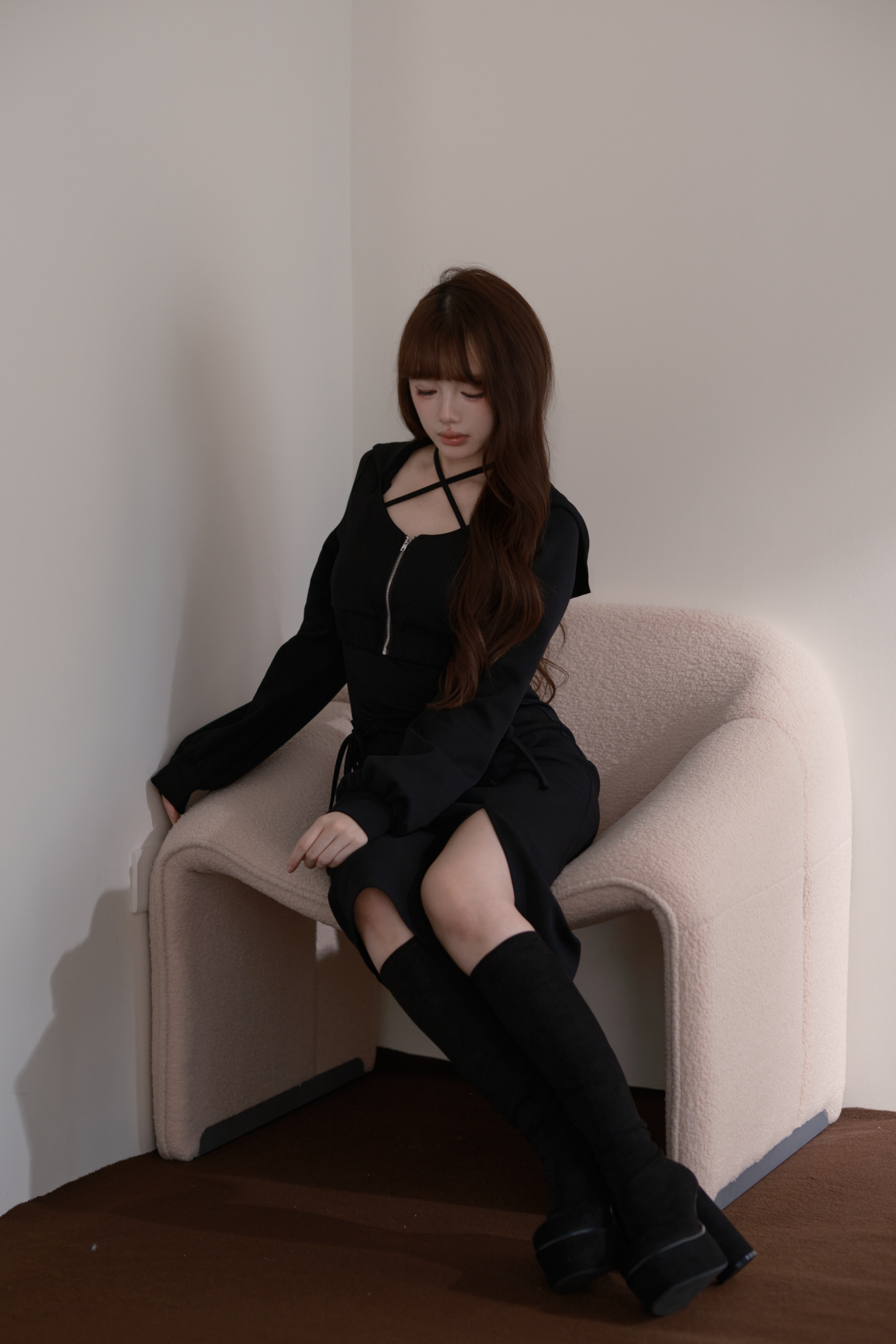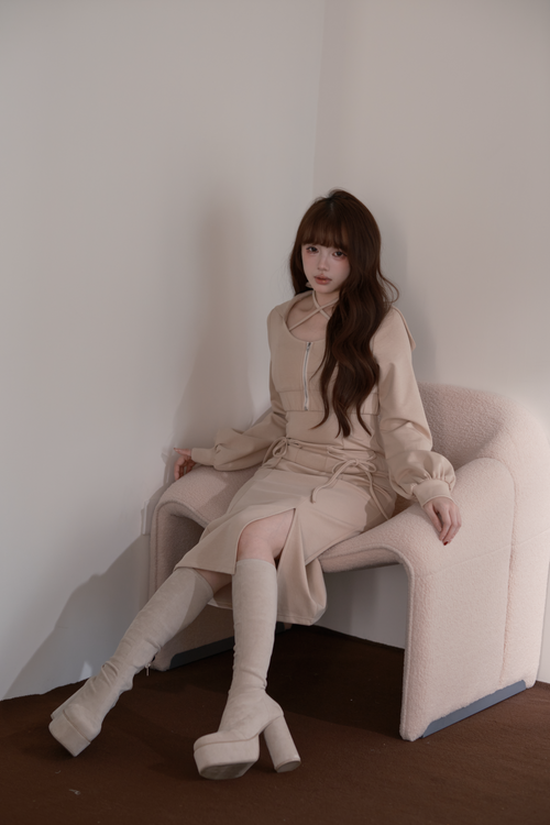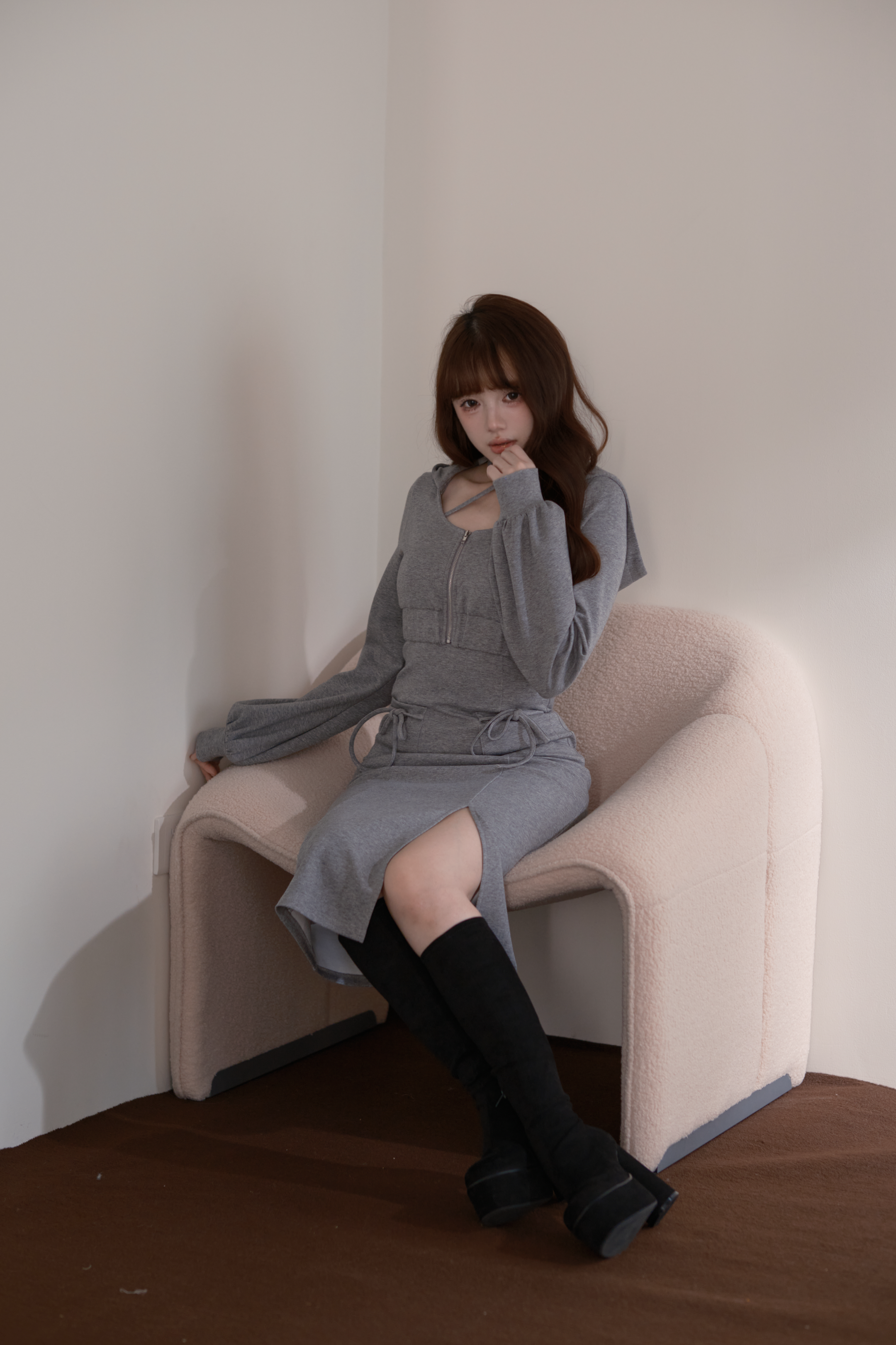 レイヤード風のデザインが可愛いフーディー×ロングキャミワンピのセット。