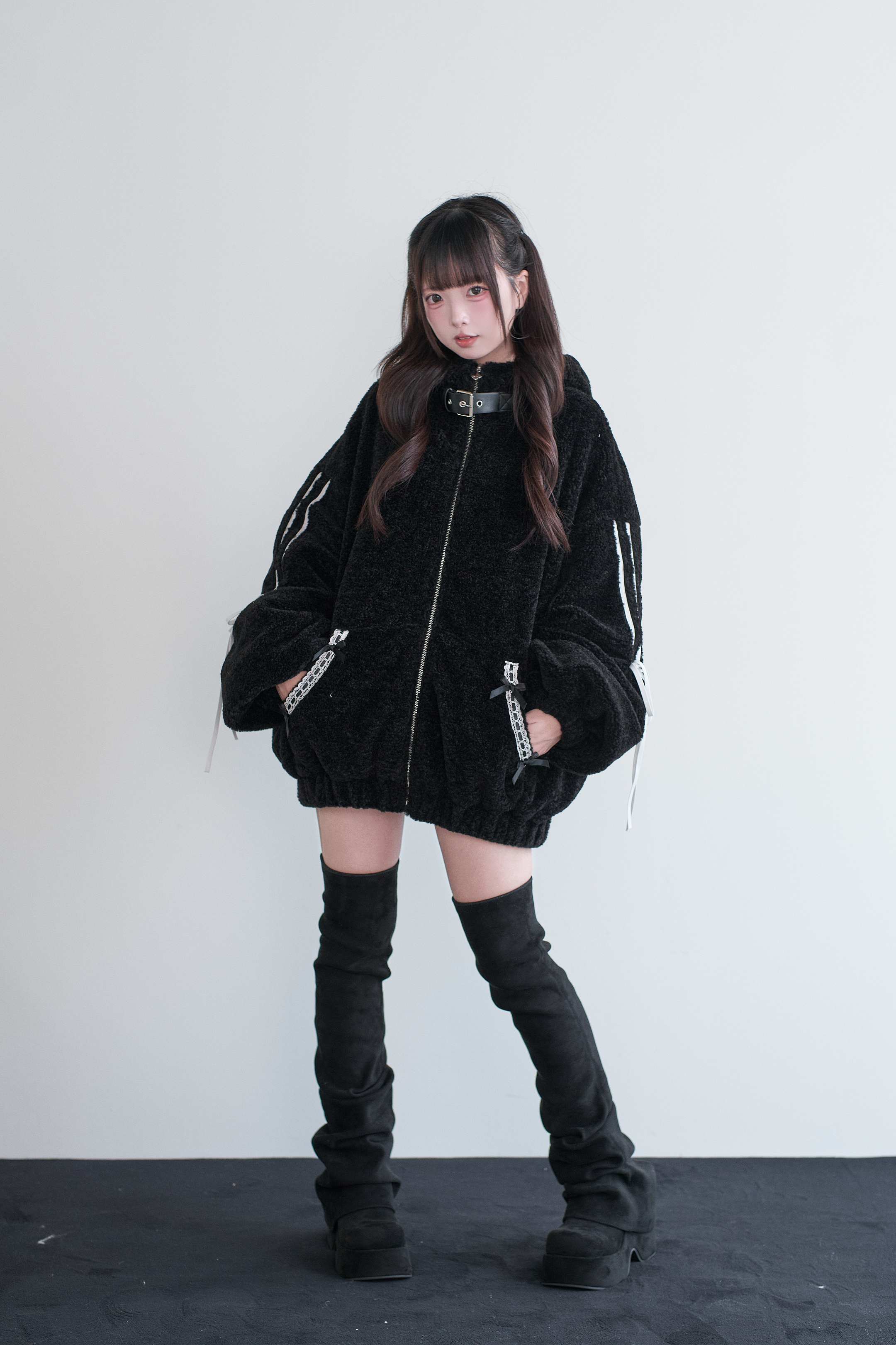 モダンなストリートスタイルとラグジュアリーな素材感が融合した、アイコニックなフーディーコート。柔らかなフェイクファー素材が上質な着心地を実現し、フードに施されたラビットイヤーのディテールが遊び心を添えます。