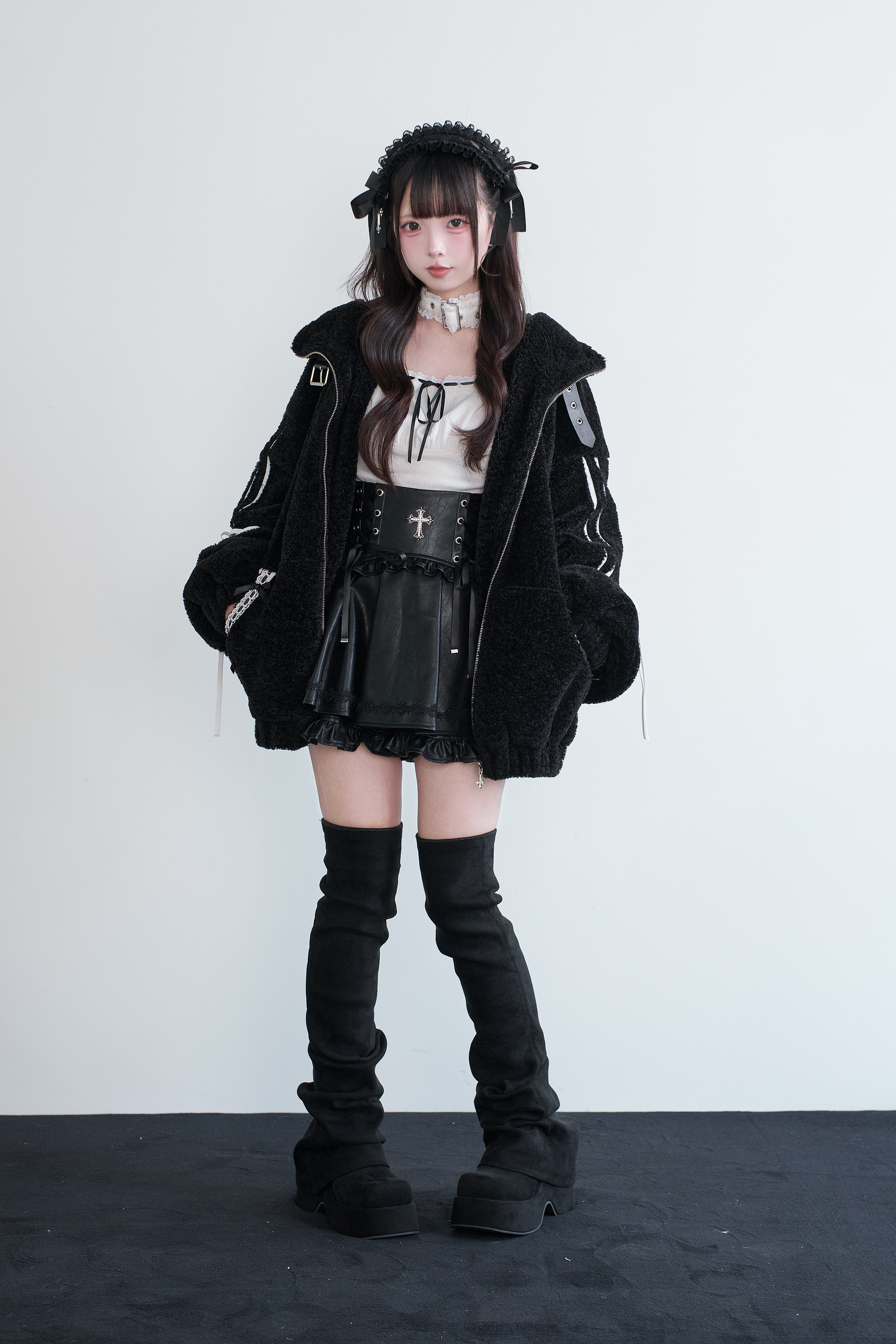 | 表地:ポリエステル80%、レーヨン20% ファー:ポリエステル100% 裏地:ポリエステル100% |