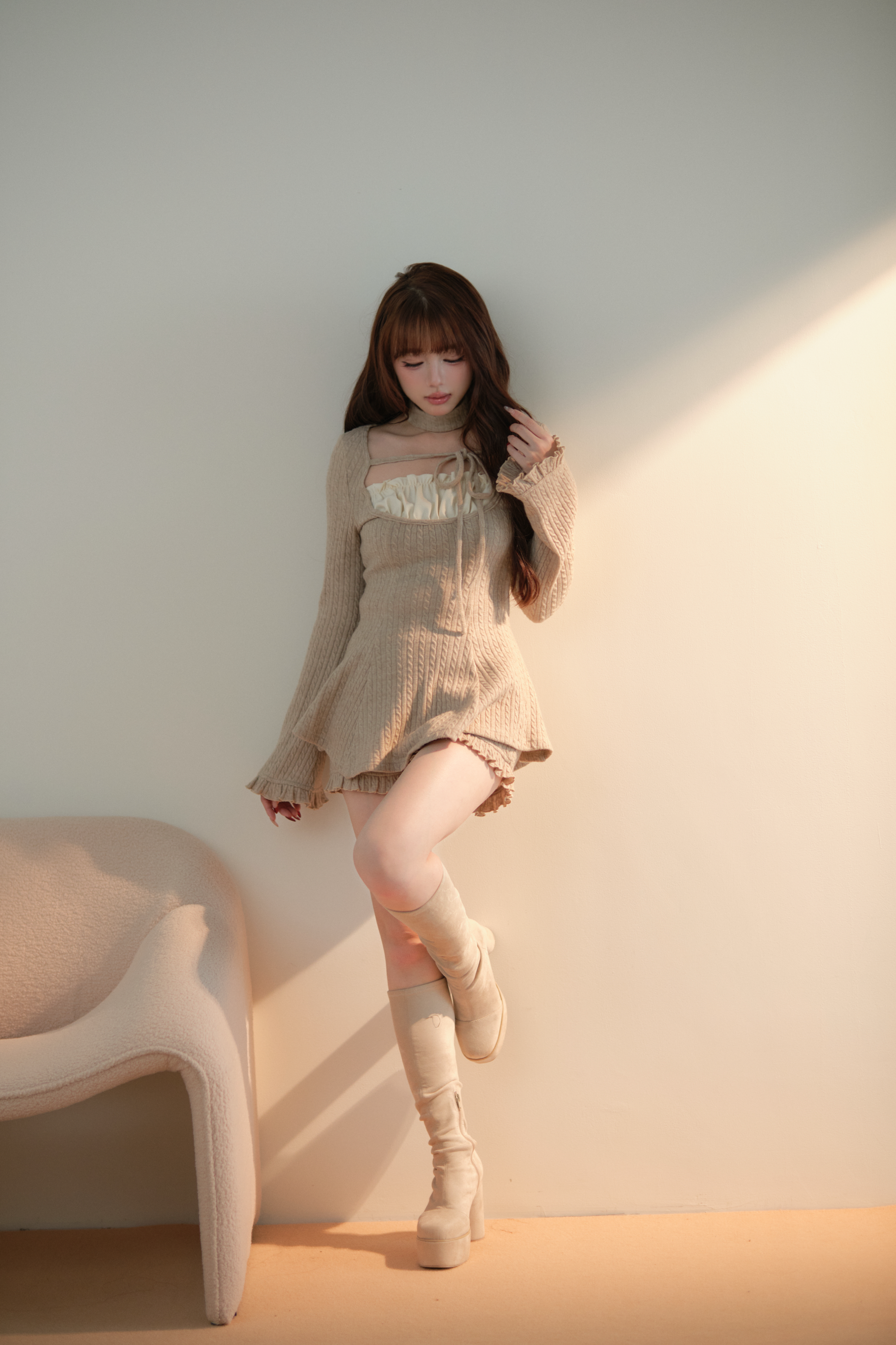 柔らかな風合いのリブニット素材を使用した、 ワンピースとショートパンツのレイヤードセット。 デコルテ部分は程よい抜け感のあるデザインで、 インナー風のディテールがコーディネートに立体感をプラスします。 ワンピースは身体に沿うシルエットながら、 裾にかけて自然に広がり、女性らしいラインを演出。 ショートパンツ付きなので、ミニ丈でも安心して着用できます。 デイリーコーデからお出かけまで幅広く活躍するアイテムです。