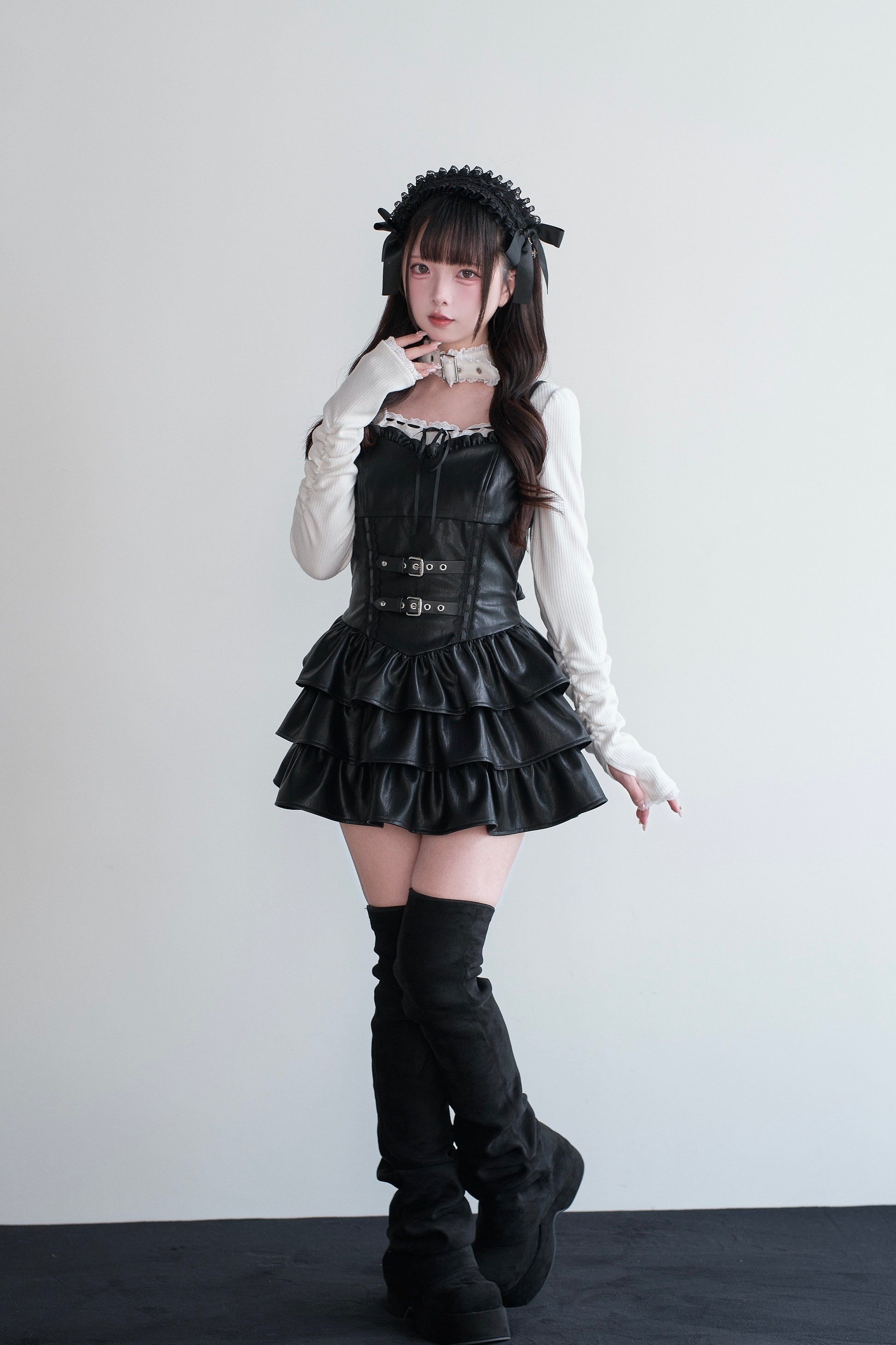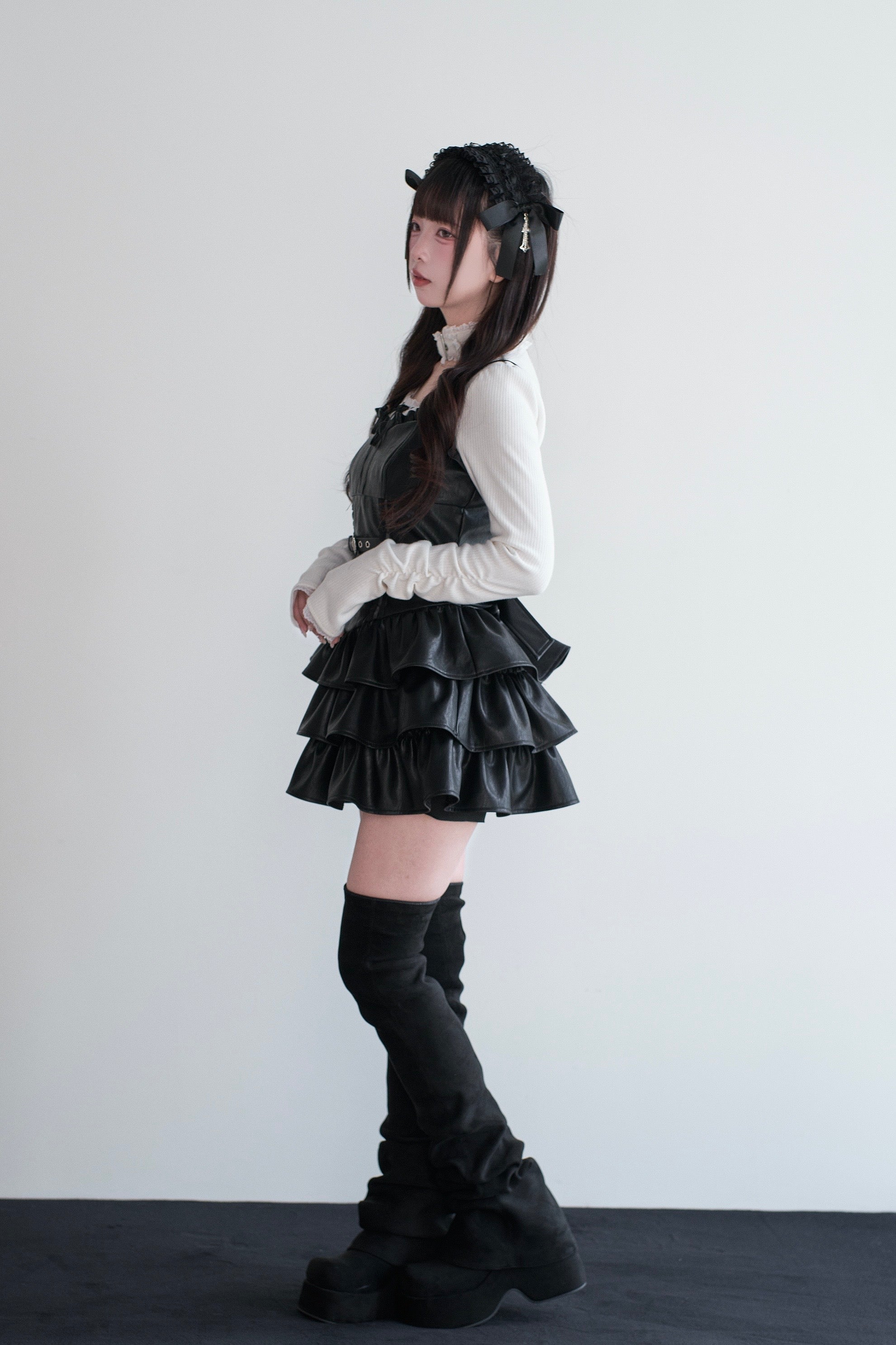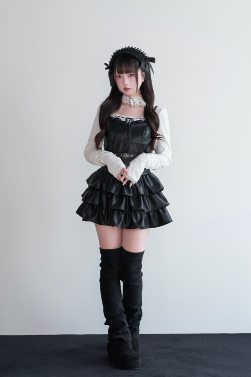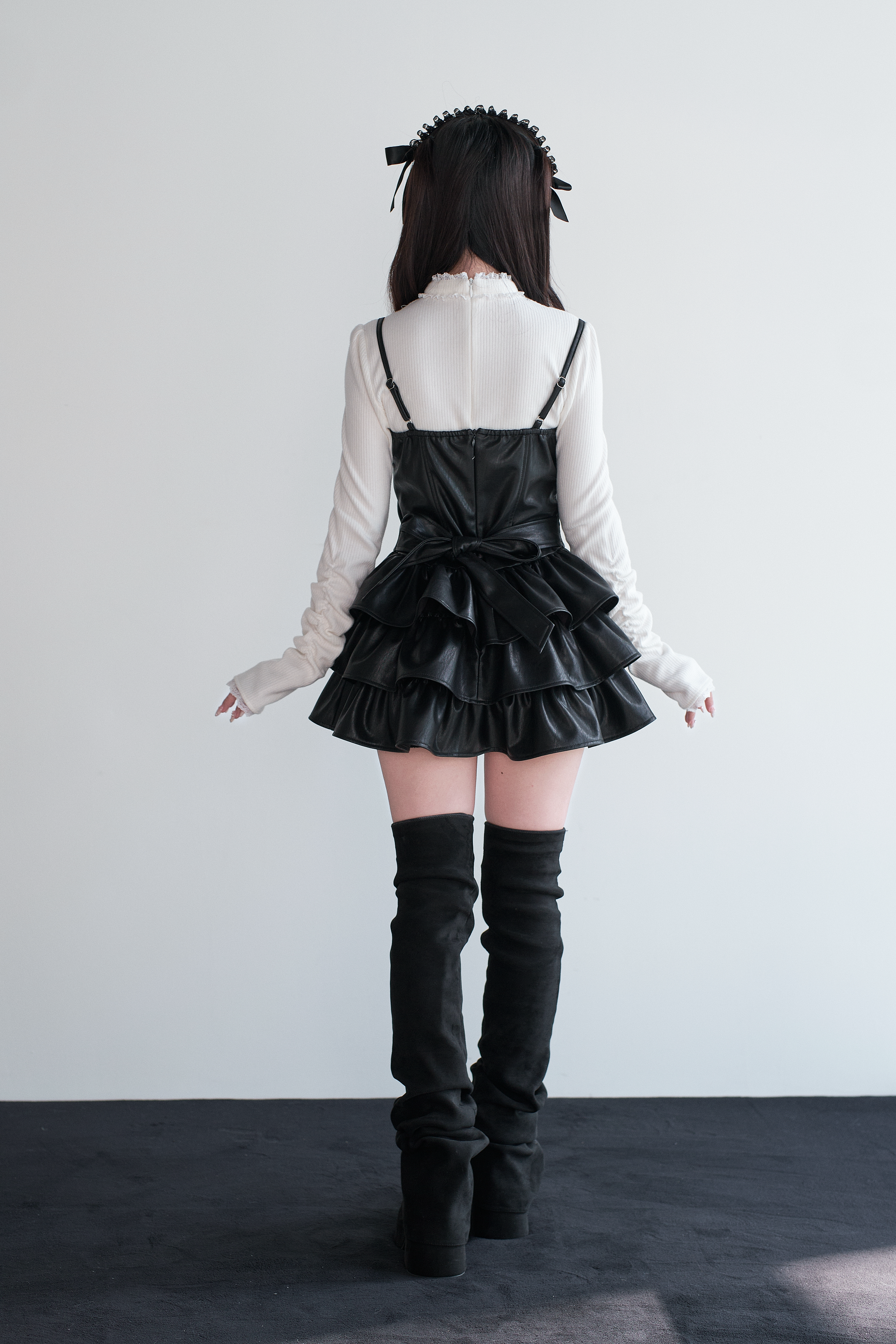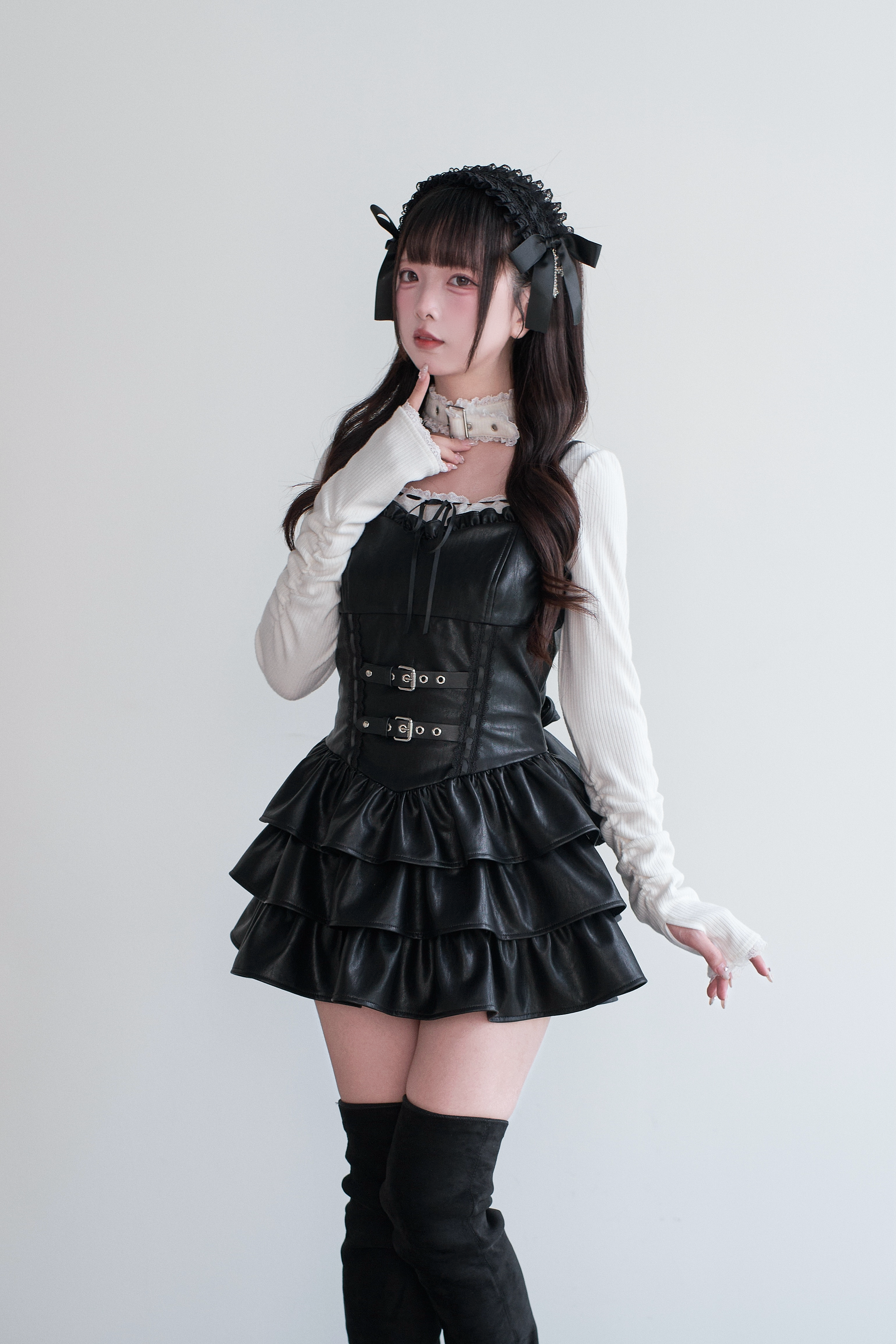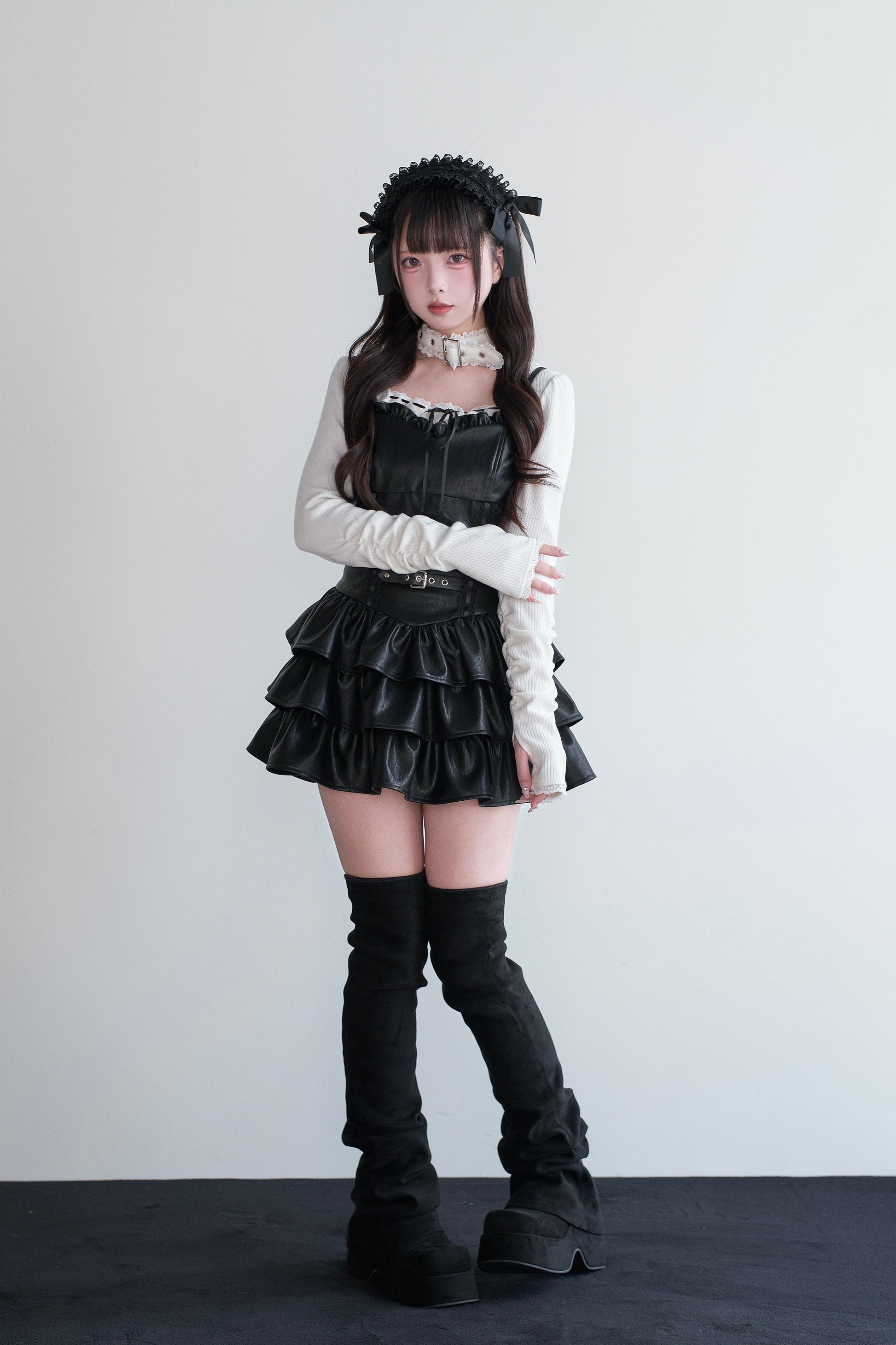 ウエストラインをきれいに見せるカッティングと、動くたびに揺れる3段フリルのスカートで、甘さとクールさを両立した NoGenki らしいデザインです。