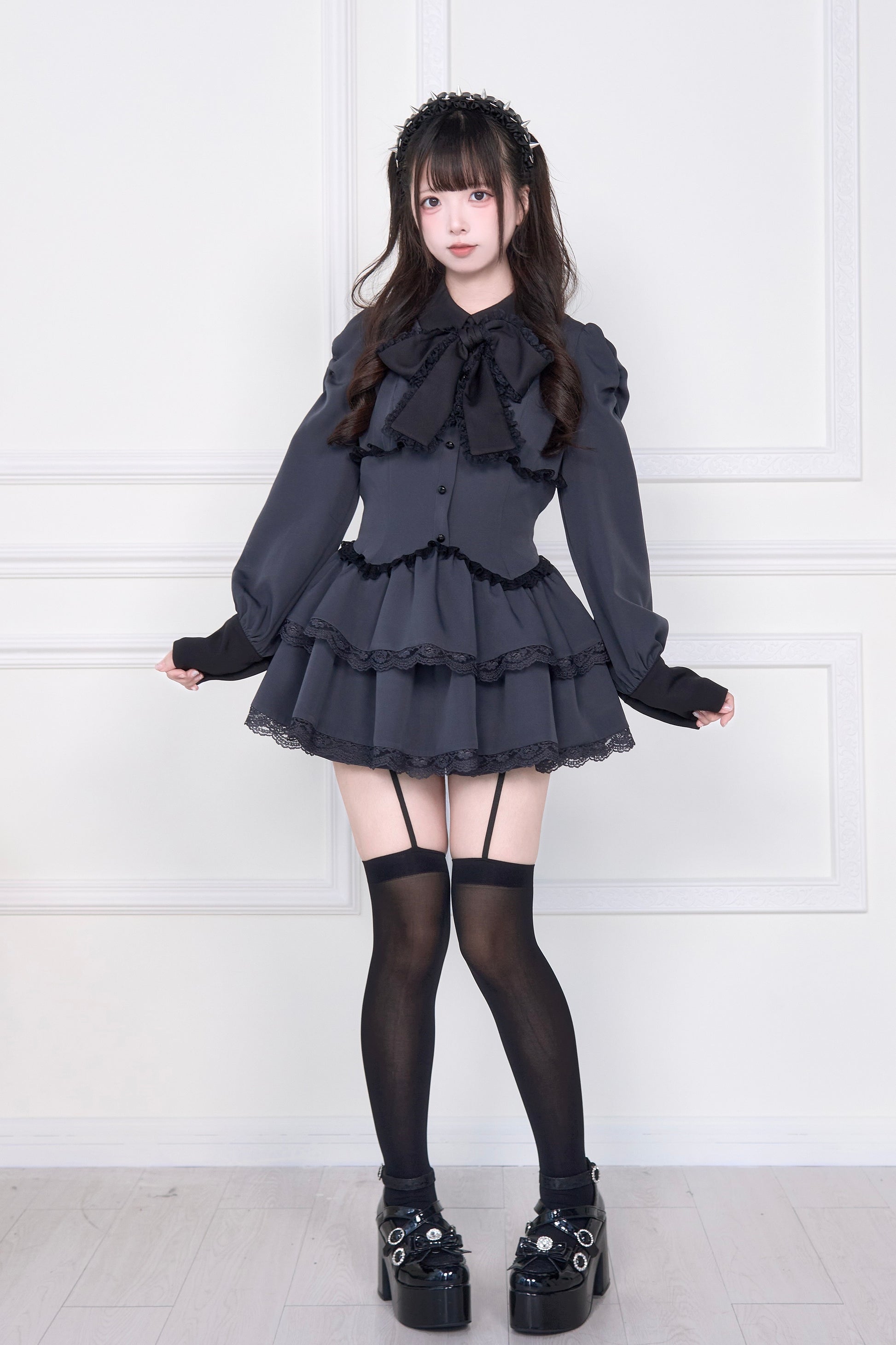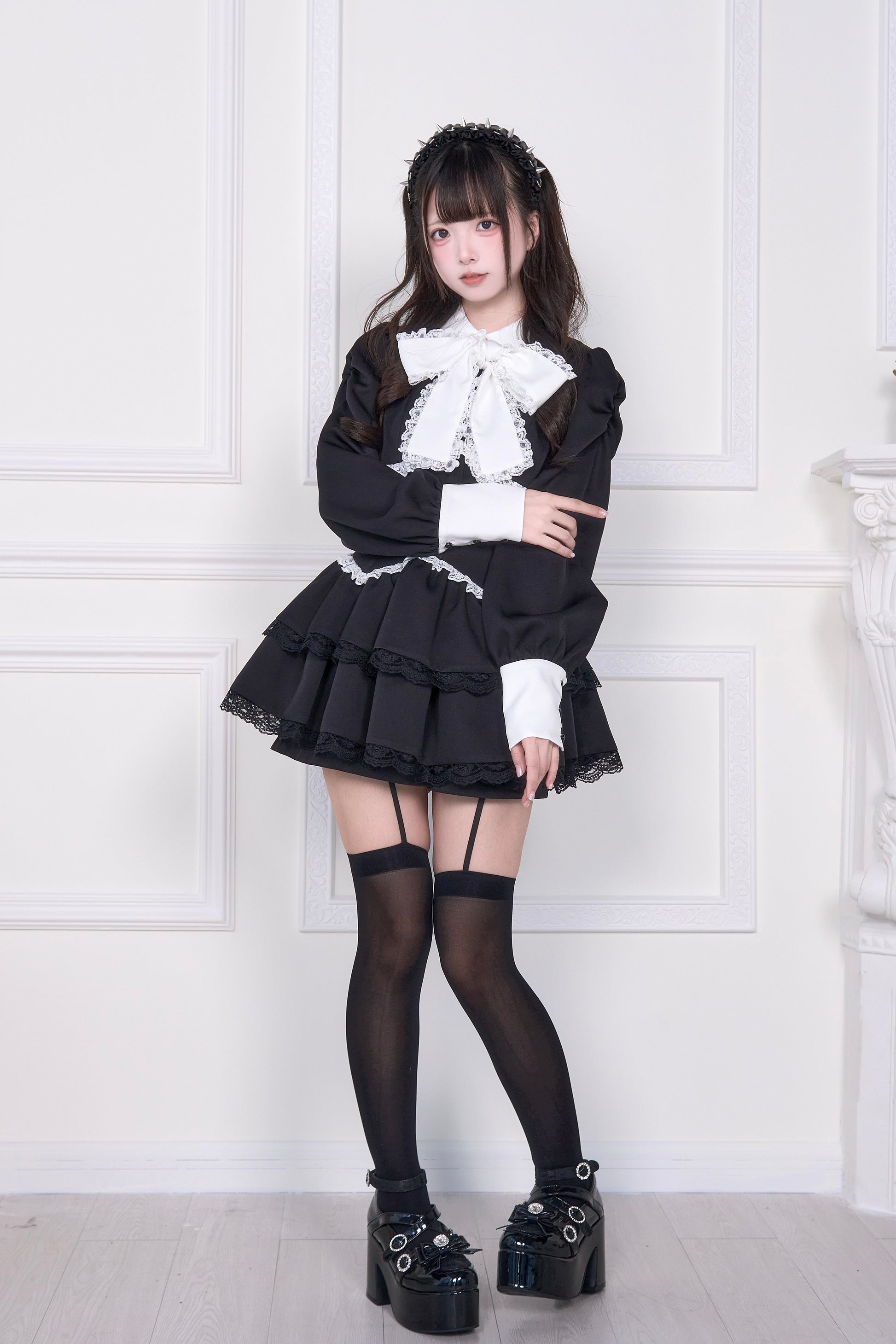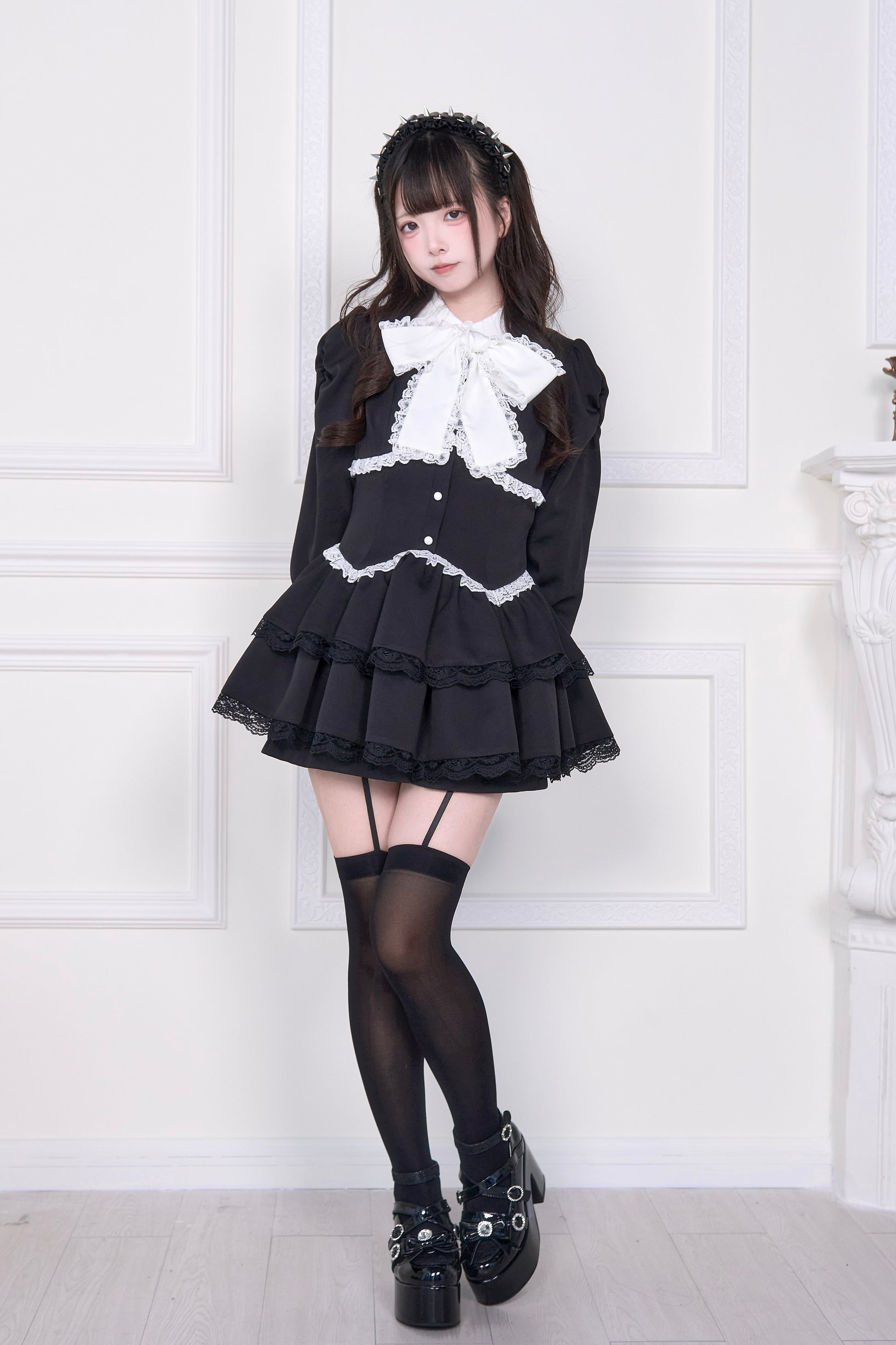 クラシックなモノトーンをベースに、可愛らしさとちょっとしたクールさを両立させたワンピセット。